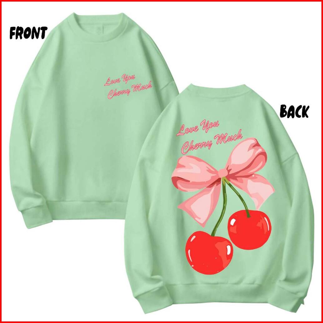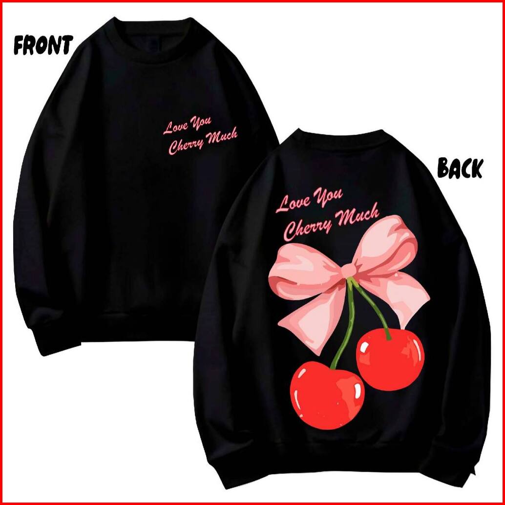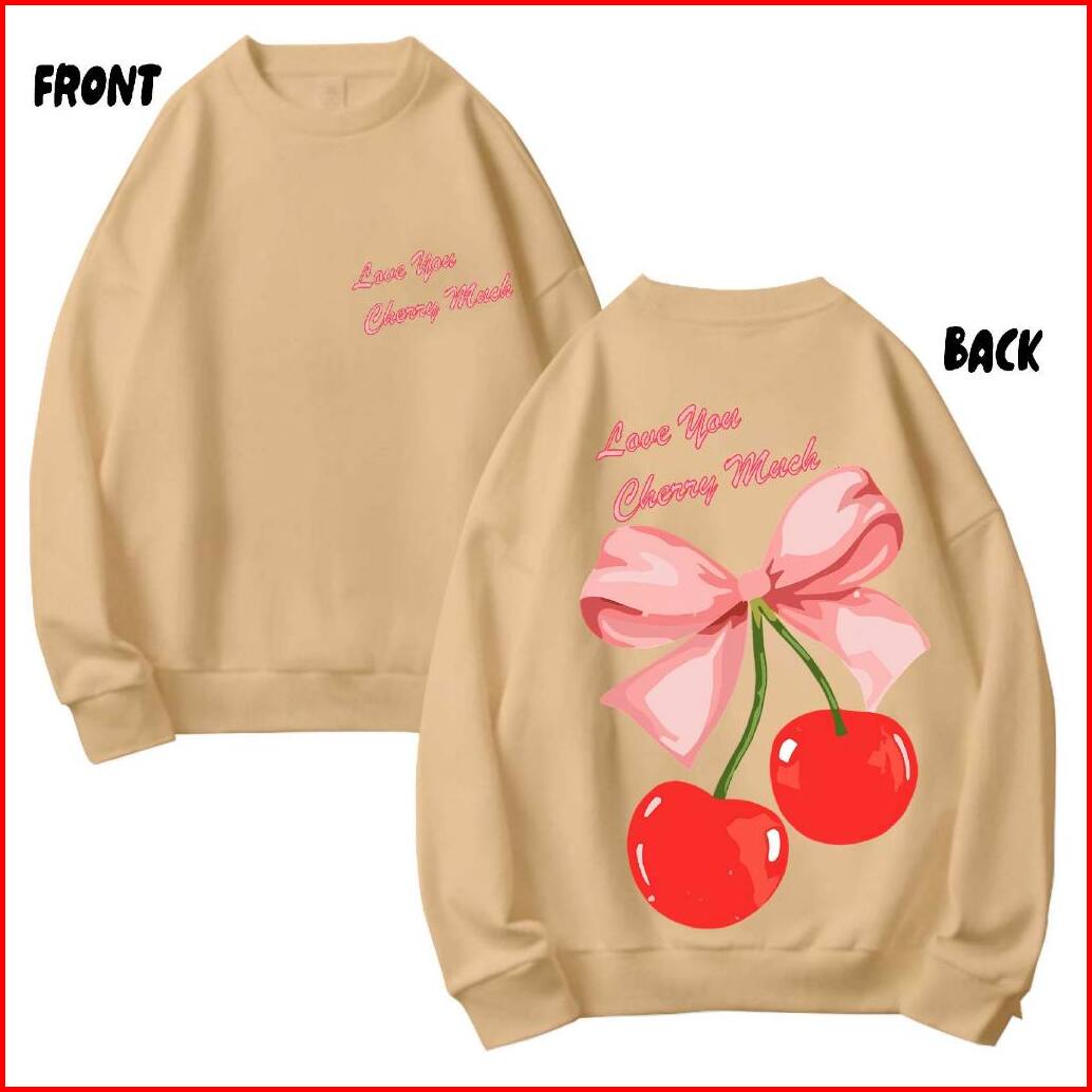 Crewneck Sweater Jyb Oversize Cherry Much Sablon Size M-xxl Pria Wanita