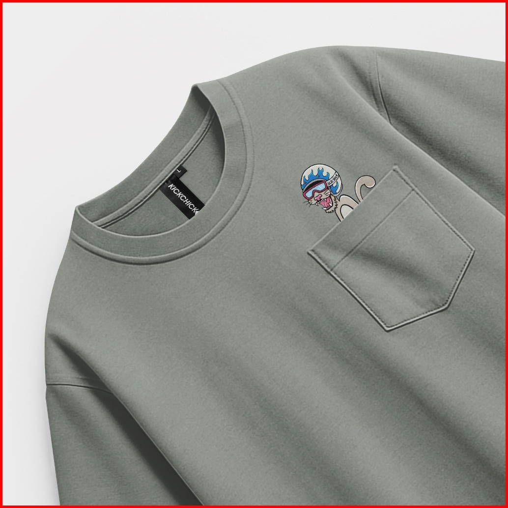 Kickchick Tshirt Oversize Pocket Cool Cat Smokey Grey V1 I Tshirt Pocket I Kcopct002