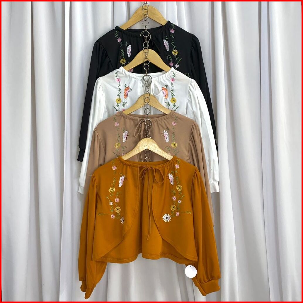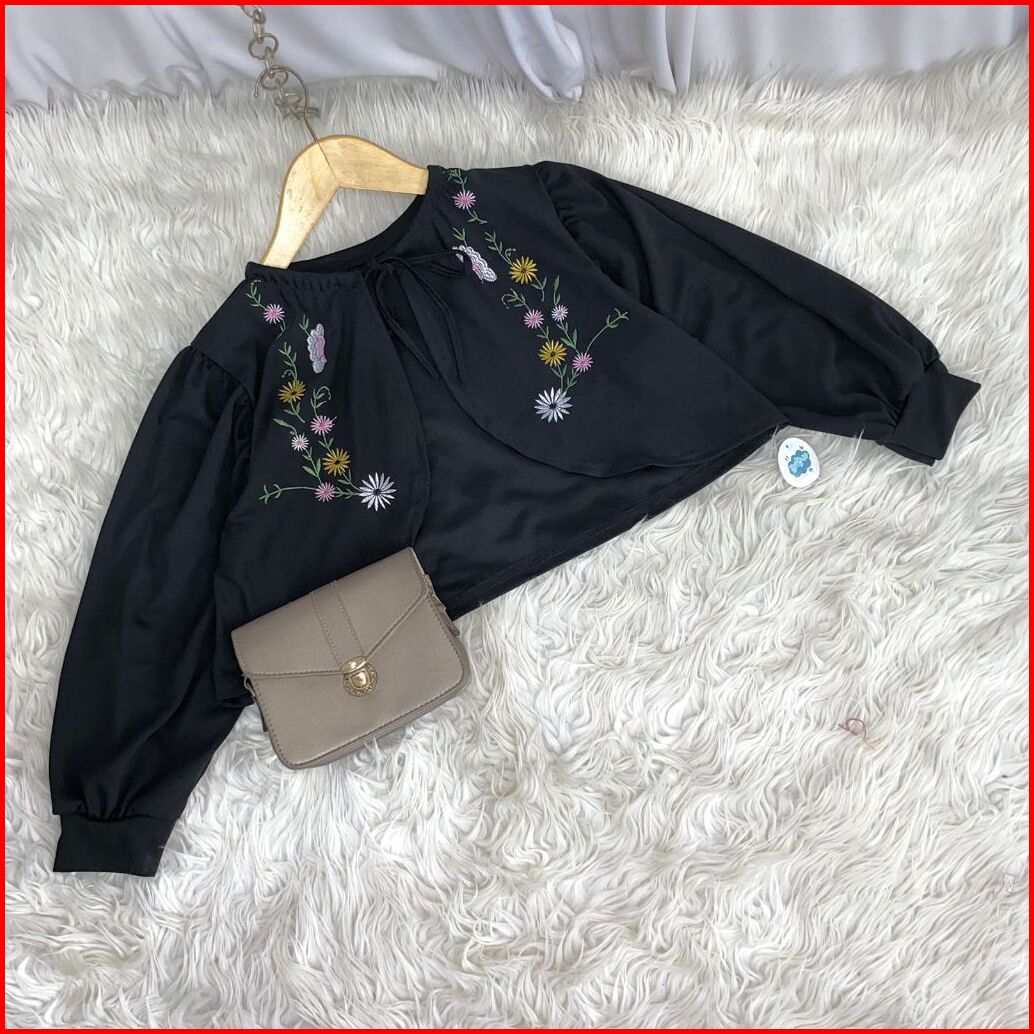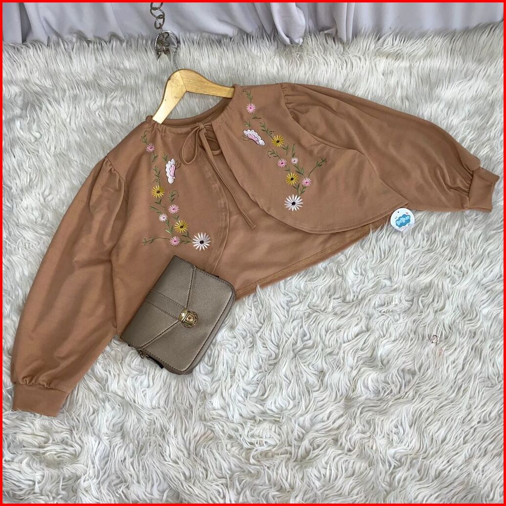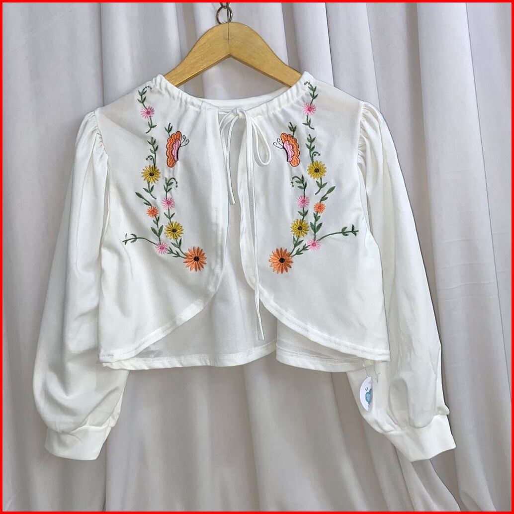 Aksara Cardi Cardigan Crop Korean Style Atasan Wanita Top Tali Motif Bunga Bordir Morina
