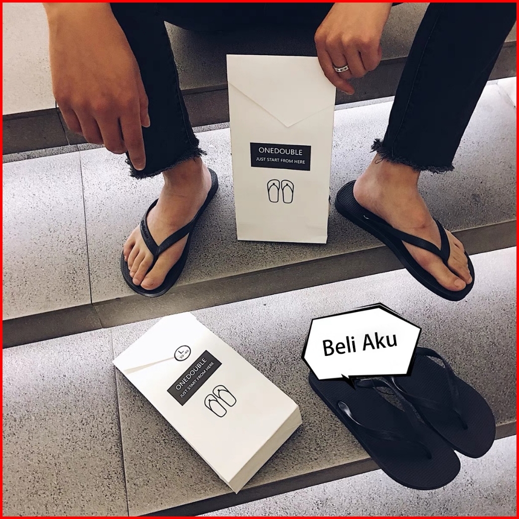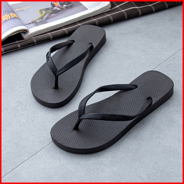 Sanbaru Sandal Jepit Non-slip Karet Pria Dewasa Sandal Jepit Kasual Klasik Hitam Murni