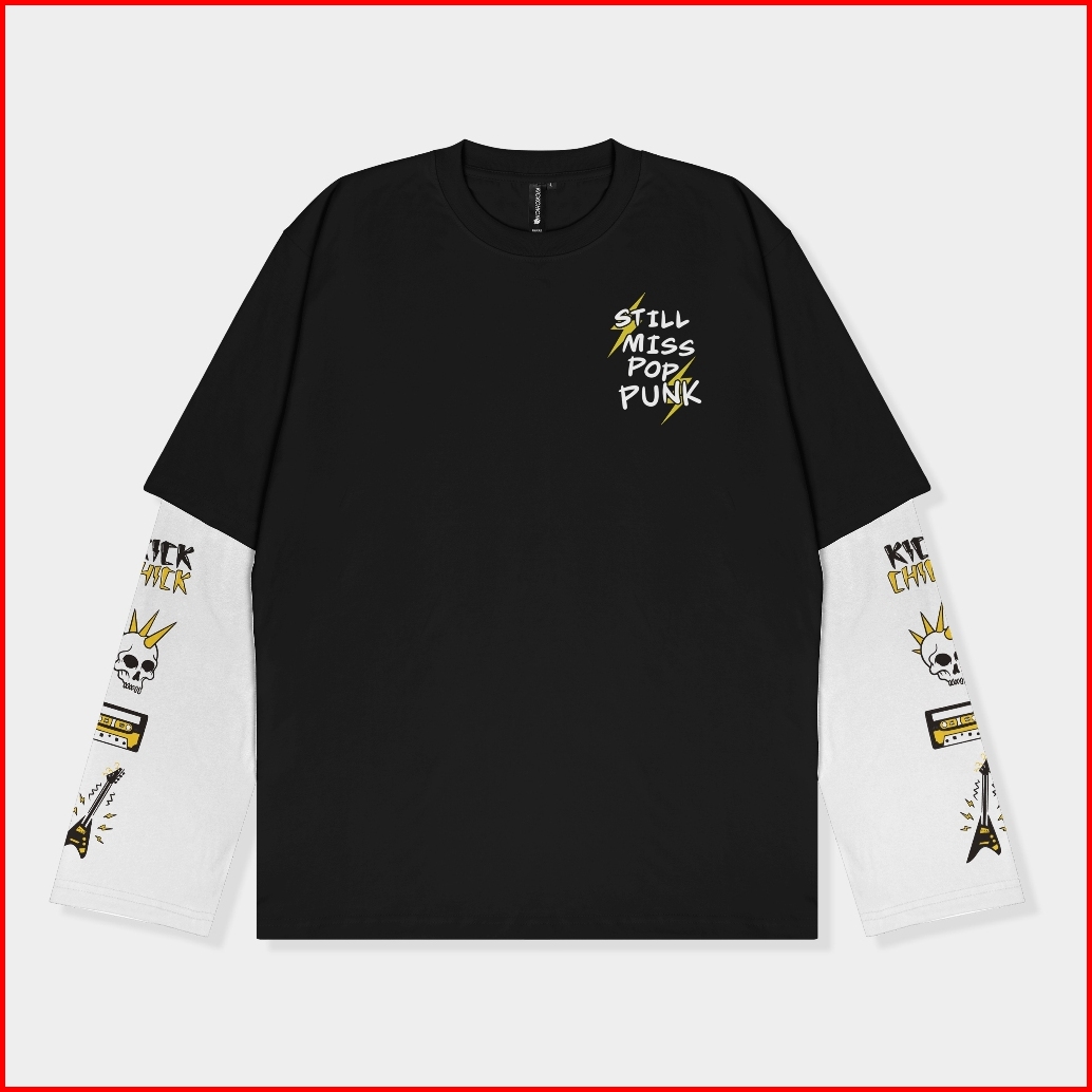 Kickchick Double Sleeve Still Pop Punk Black Kaos Oversize Lengan Panjang Kcds008