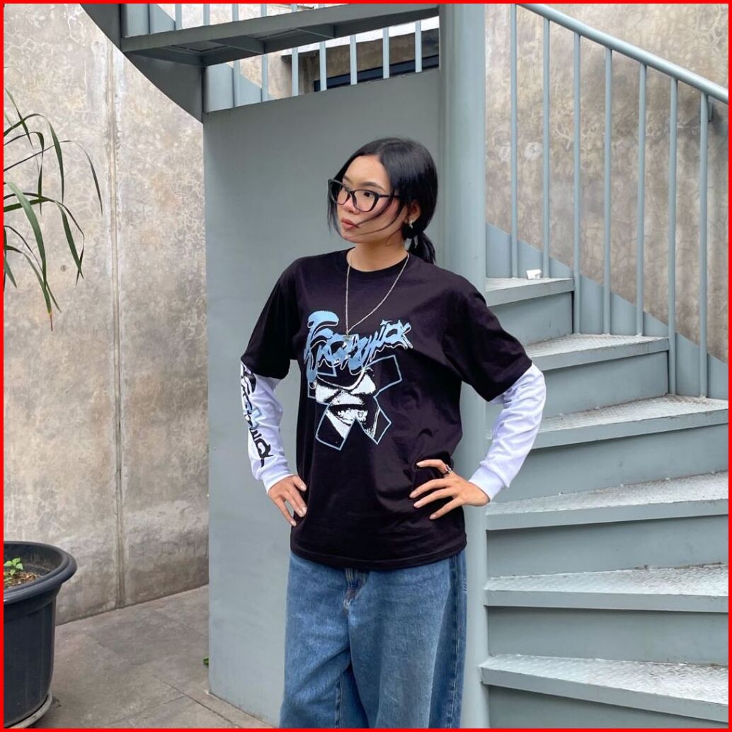 Kickchick Reguler Doublesleeve Cheerful Black White Longsleeve Rib Kaos Pria Lengan Panjang Kcdsv2001