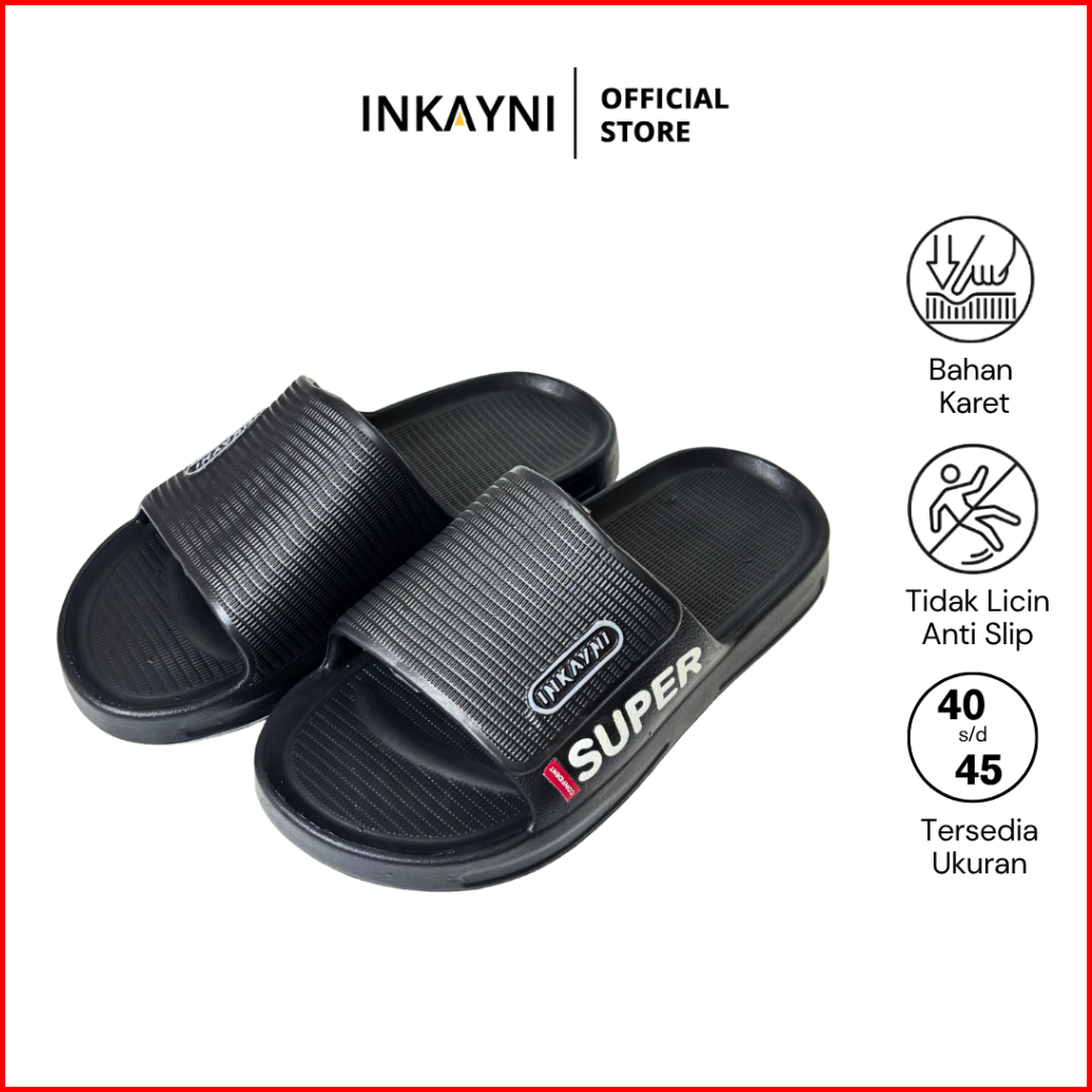 Inkayni Sendal Selop Polos Motif Logo Super Size 40-45 Elastis Anti Slip Berbahan Eva
