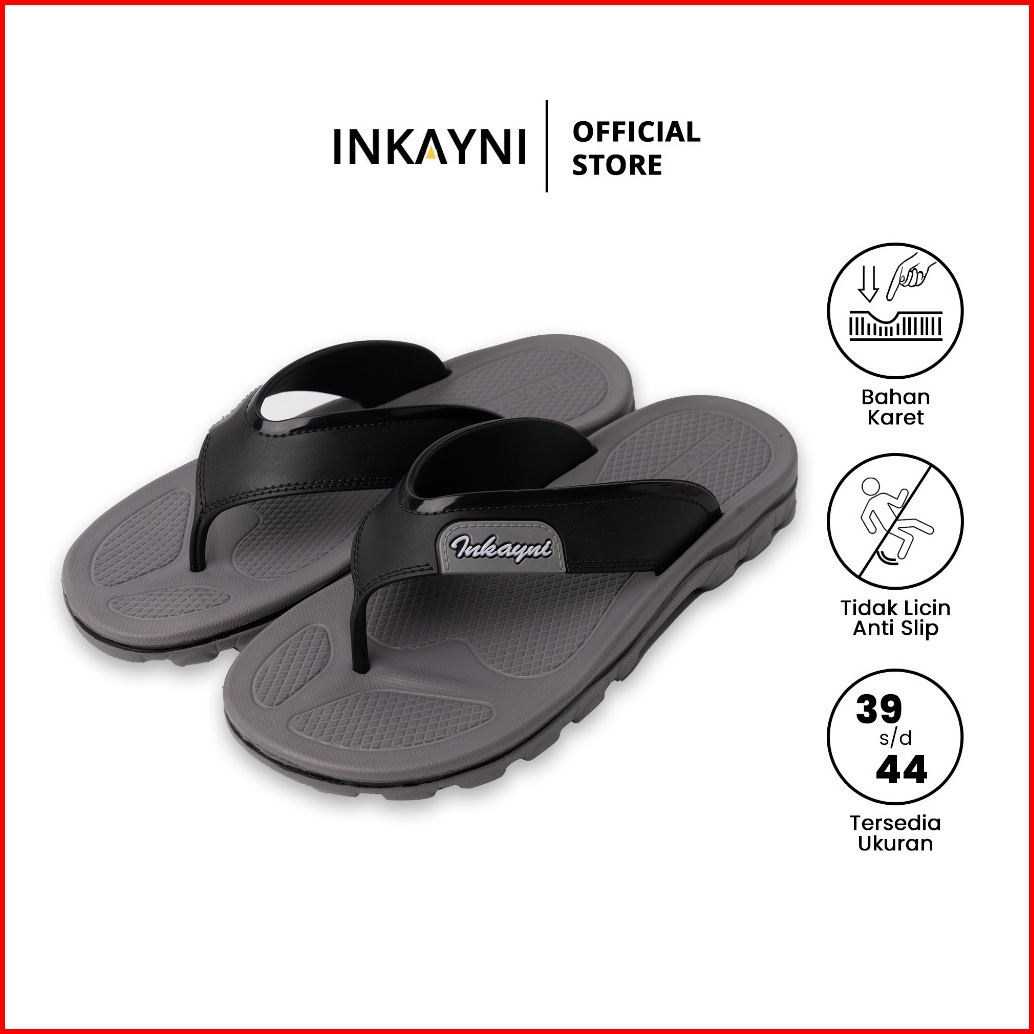 Inkayni Sandal Jepit Pria Dan Anak Laki-laki Size 39-44 Flip Flop Bahan Karet Casual Anti Slip