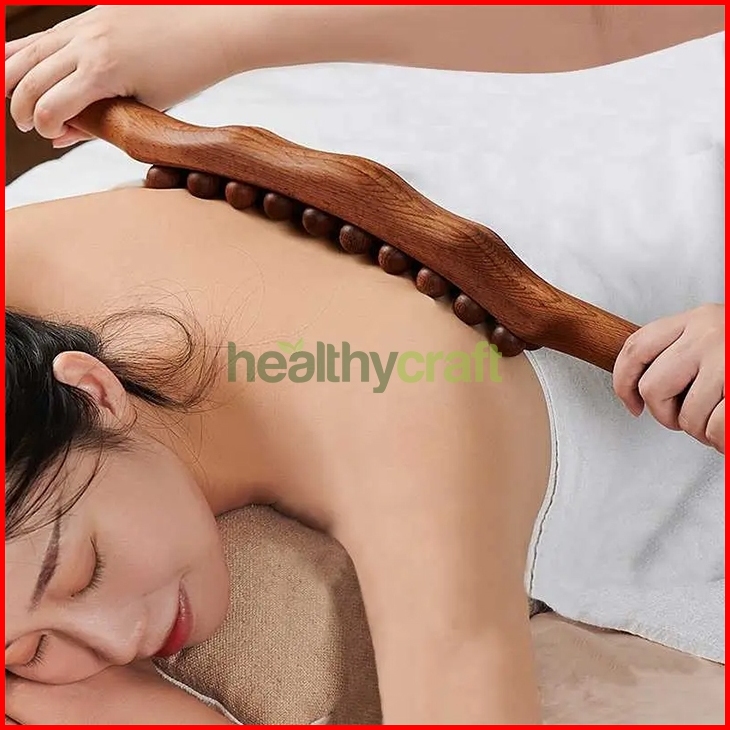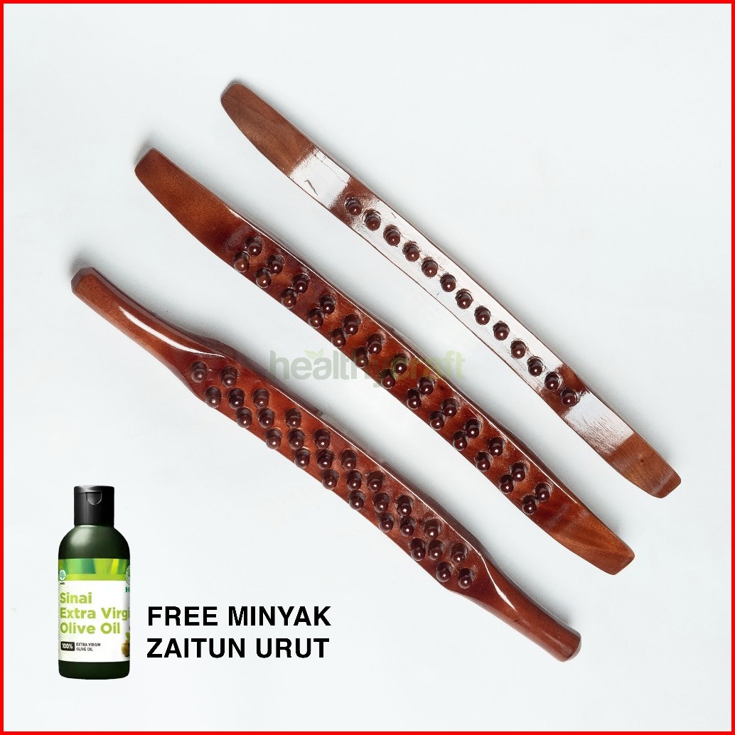 Free Minyak Zaitun Tongkat Pijat Meridian Gua Sha 3 Baris Terapi Pijit Punggung Perut Kaki Pundak Kayu Alami Mahoni