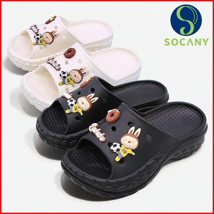 Socany Sandal Labubu Wanita Jelly Fuji Motif Labubu Sandal Wedges Wanita Platfrom Tebal Terbaru Eva