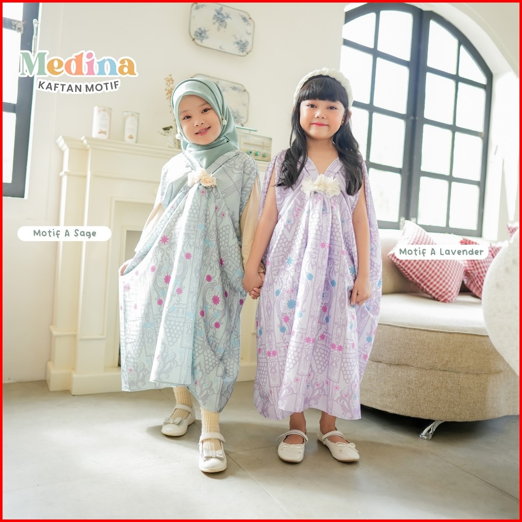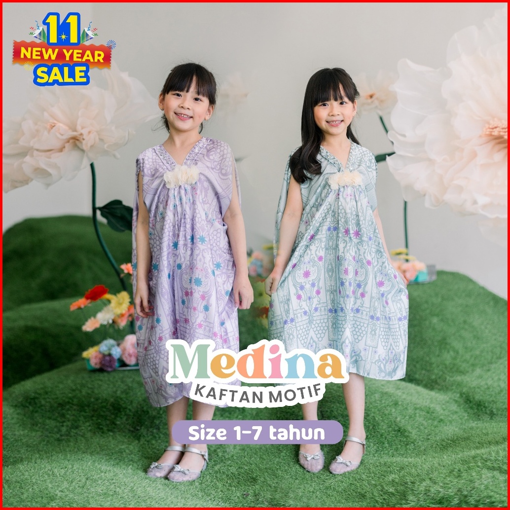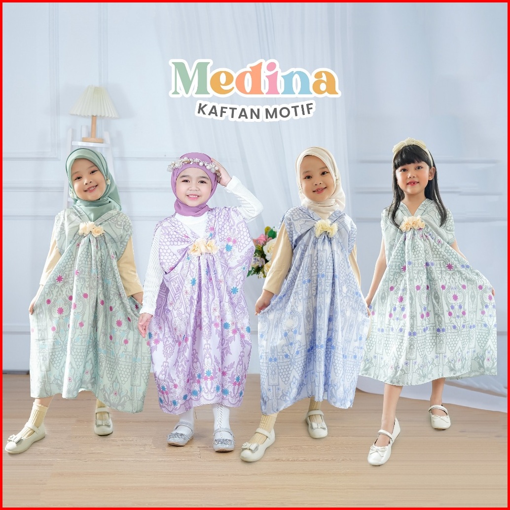 Medina Kaftan Lebaran Motif Umur 1-7 Tahun Bahan Armani Silk Premium Batik Etnic Payet