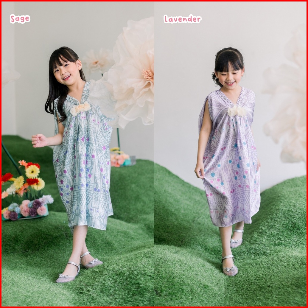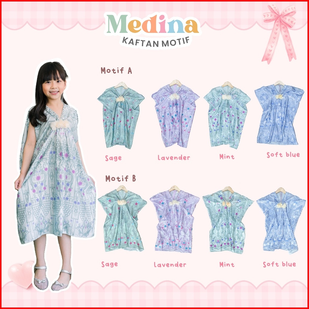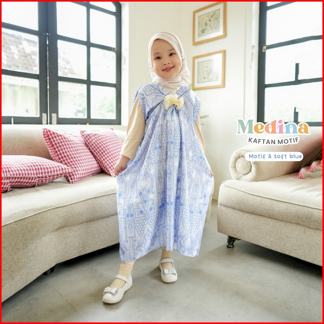 Medina Kaftan Lebaran Motif Umur 1-7 Tahun Bahan Armani Silk Premium Batik Etnic Payet