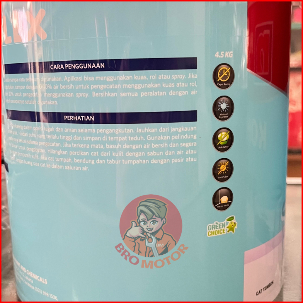 1102 WHITE, 1185 HIBISCUS, 1672 CANDY PINK, 1131 ORANGE TORCH, 1557 SUNSHINE, 1685 MUSTARD, 1128 SUN MIRACLE, 1509 LILY WHITE, 1116 CREAM, 1183 PEBBLE, 1117 IVORY, 1676 FRESH MINT, 1677 EMERALD, 1620 APPLE GREEN, 1686 SOFT JALAPENO, 1687 VERDE PAZ, 1154 HIJAU TELOR, 1129 PEACH, 1192 MERRY WHITE, 1547 SWIMMING BLUE, 1157 MILLENIUM BLUE, 1690 CLEAR SKY, 1671 MOON GLOW, 1180 MIST GREY, 1109 BLUE WHITE, 1682 GRISEO, 1108 EXTRA WHITE, 1688 REAL MORADO
