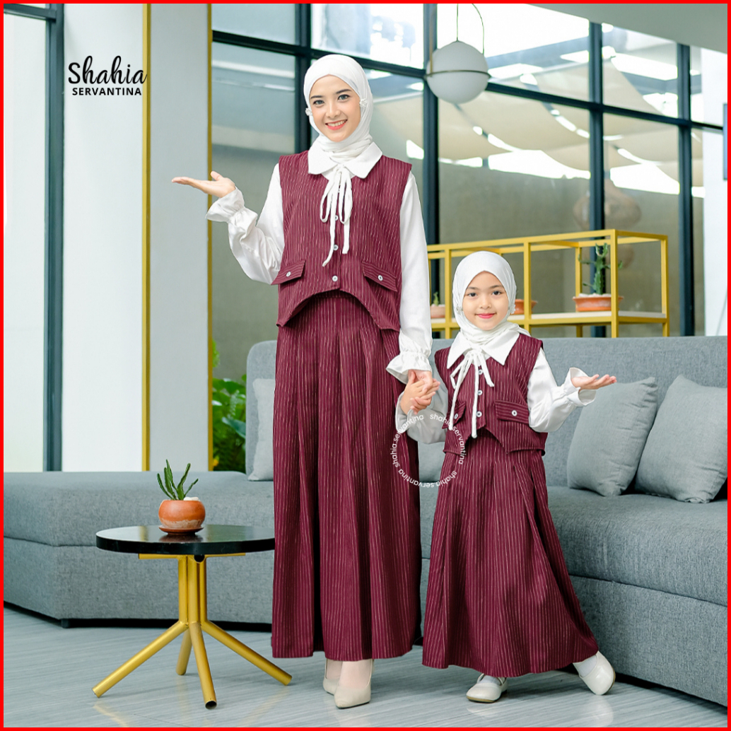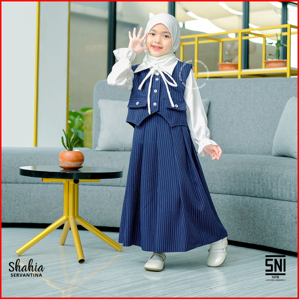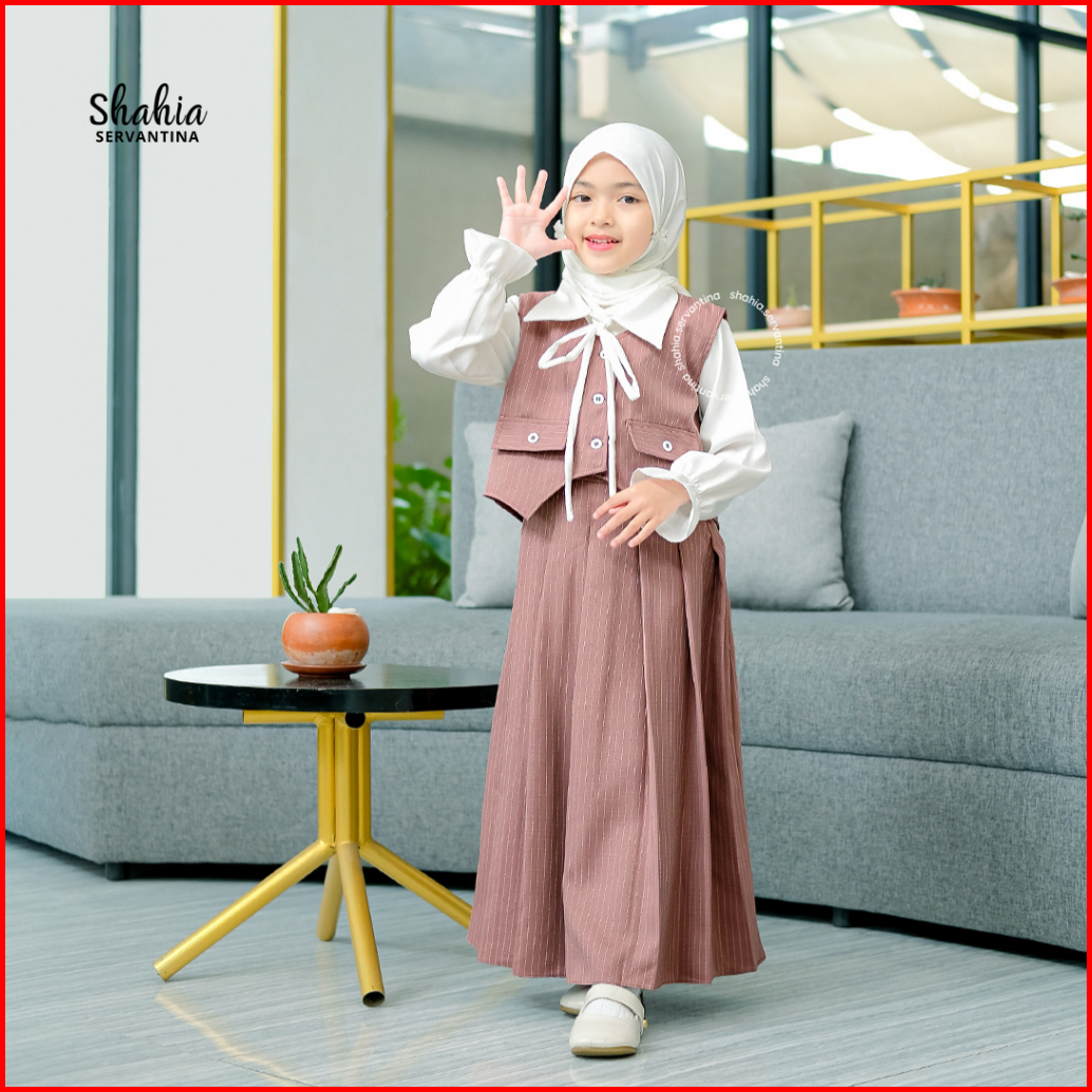 Shahia Servantina - Lizzi 3in1 Oneset Salur Setelan Rok Anak Perempuan Muslim Panjang