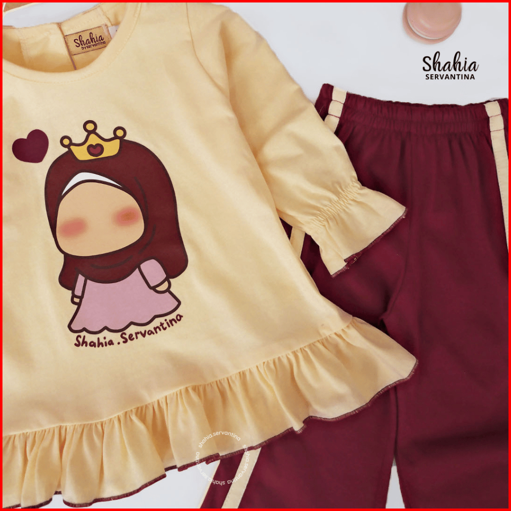 Shahia Servantina - Hava Oneset Katun Setelan Celana Anak Perempuan
