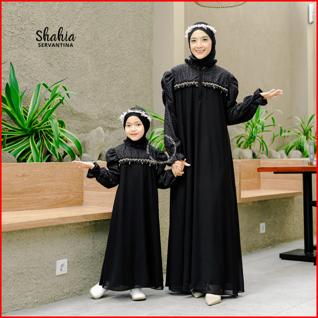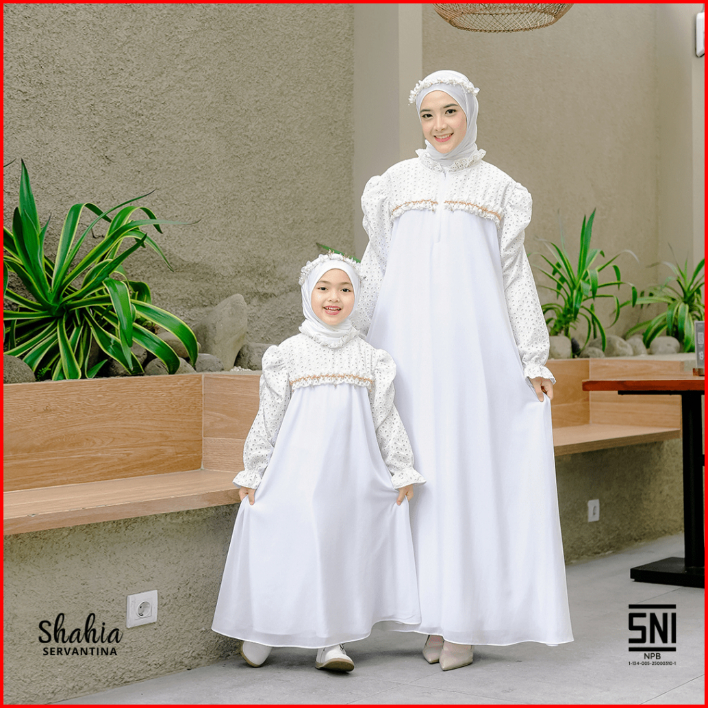 Shahia Servantina - Emery Dress Katun Bordir Couple Ibu Anak Gamis Putih Manasik Haji Umroh