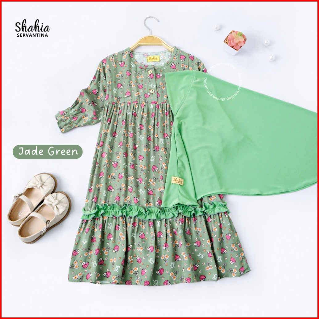 Shahia Servantina - Satu Set Jilbab Khalis Set Gamis Rayon Anak Perempuan Dress