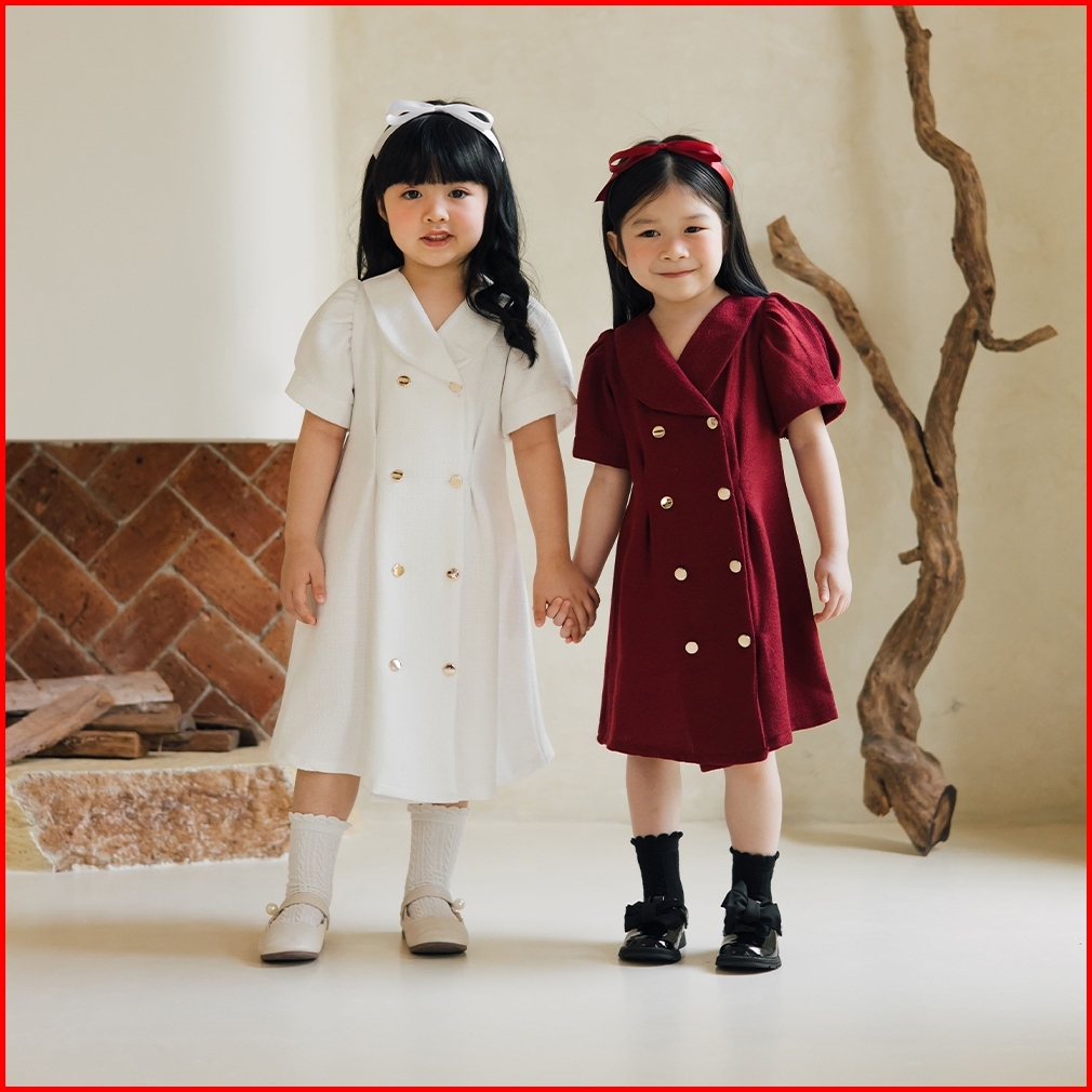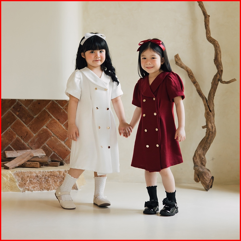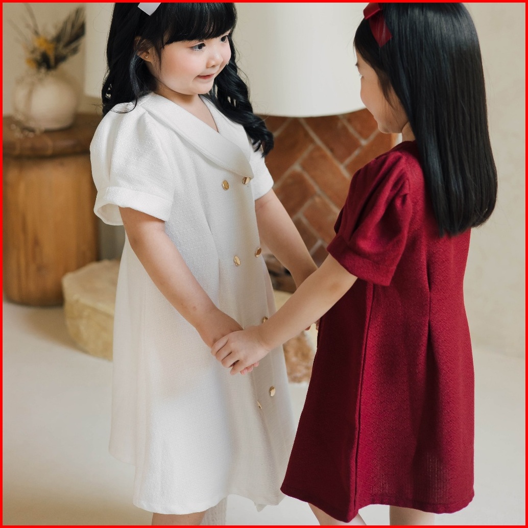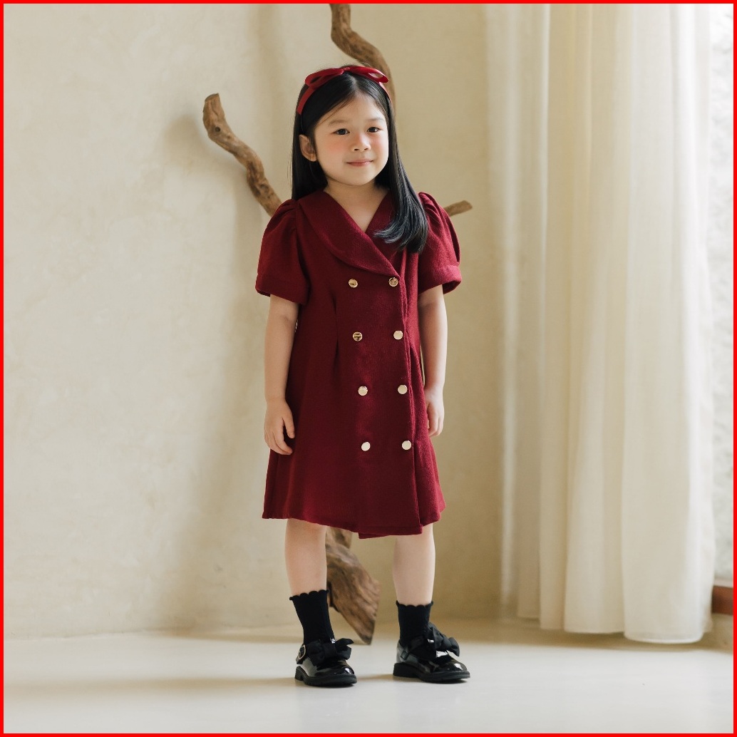 Doobeedam Nora Dress - Dress Anak Perempuan Merah Putih Tweed Natal