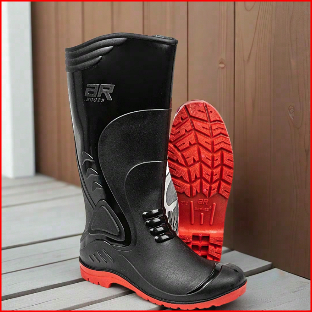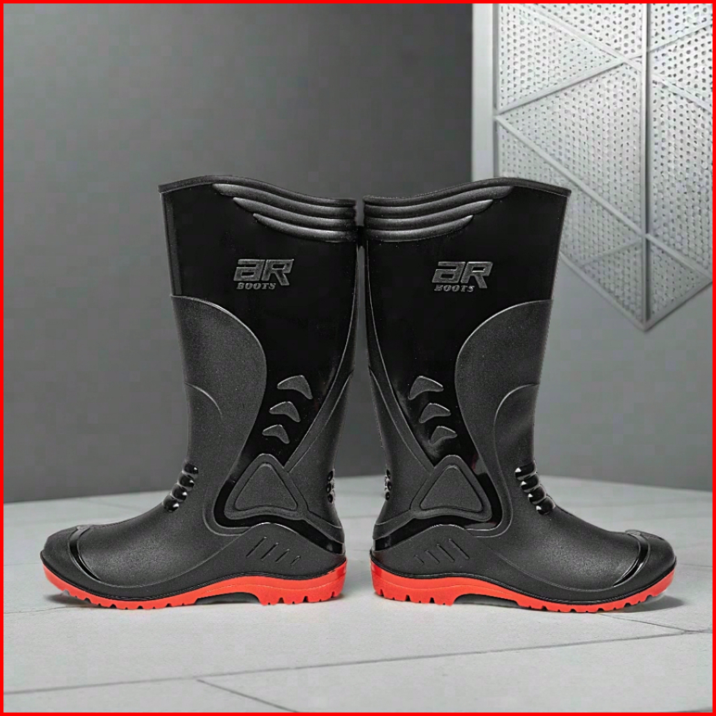 Sepatu Boot Tinggi Ardiles Crane Hitam Merah Karet Lokal Anti Air Slip Ringan Lentur Size 25-28