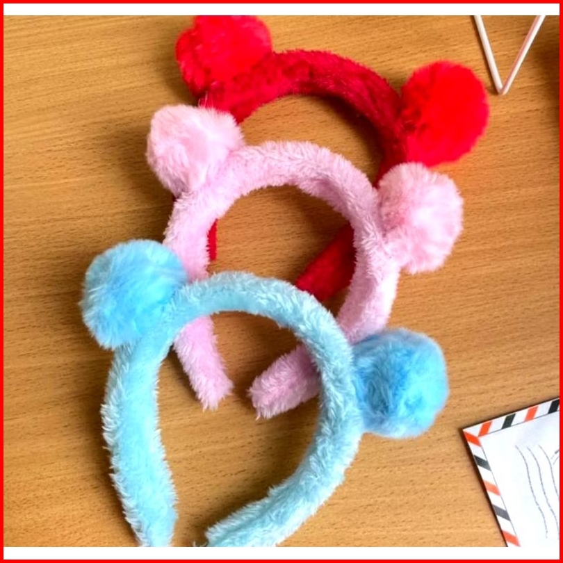 Lusinan 12 Pcs Bando Bulu Pom Pom Bando Bandana Gaya Korea