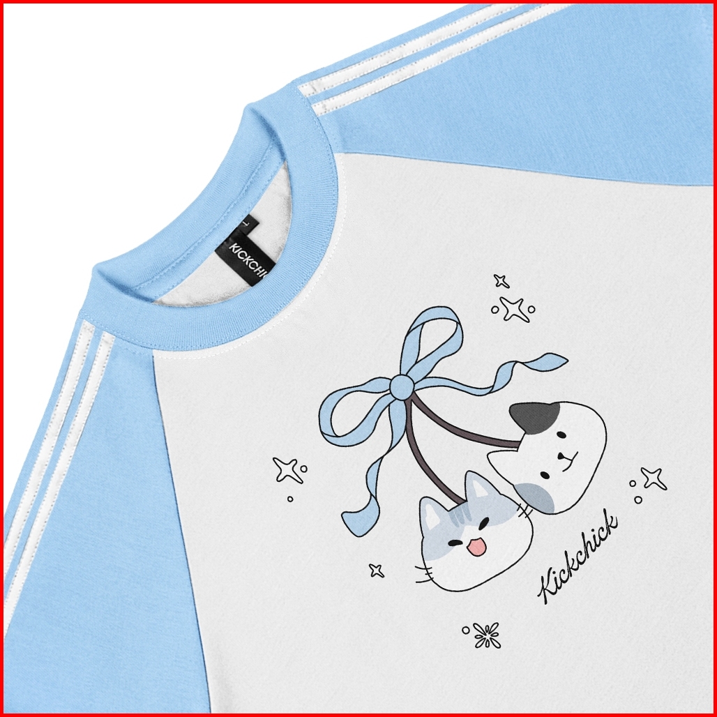 Kickchick Croptop Slimfit String Cat Head White Baby Blue Tshirt Crop Kaos Atasan Croptee Kc-csf-strings002