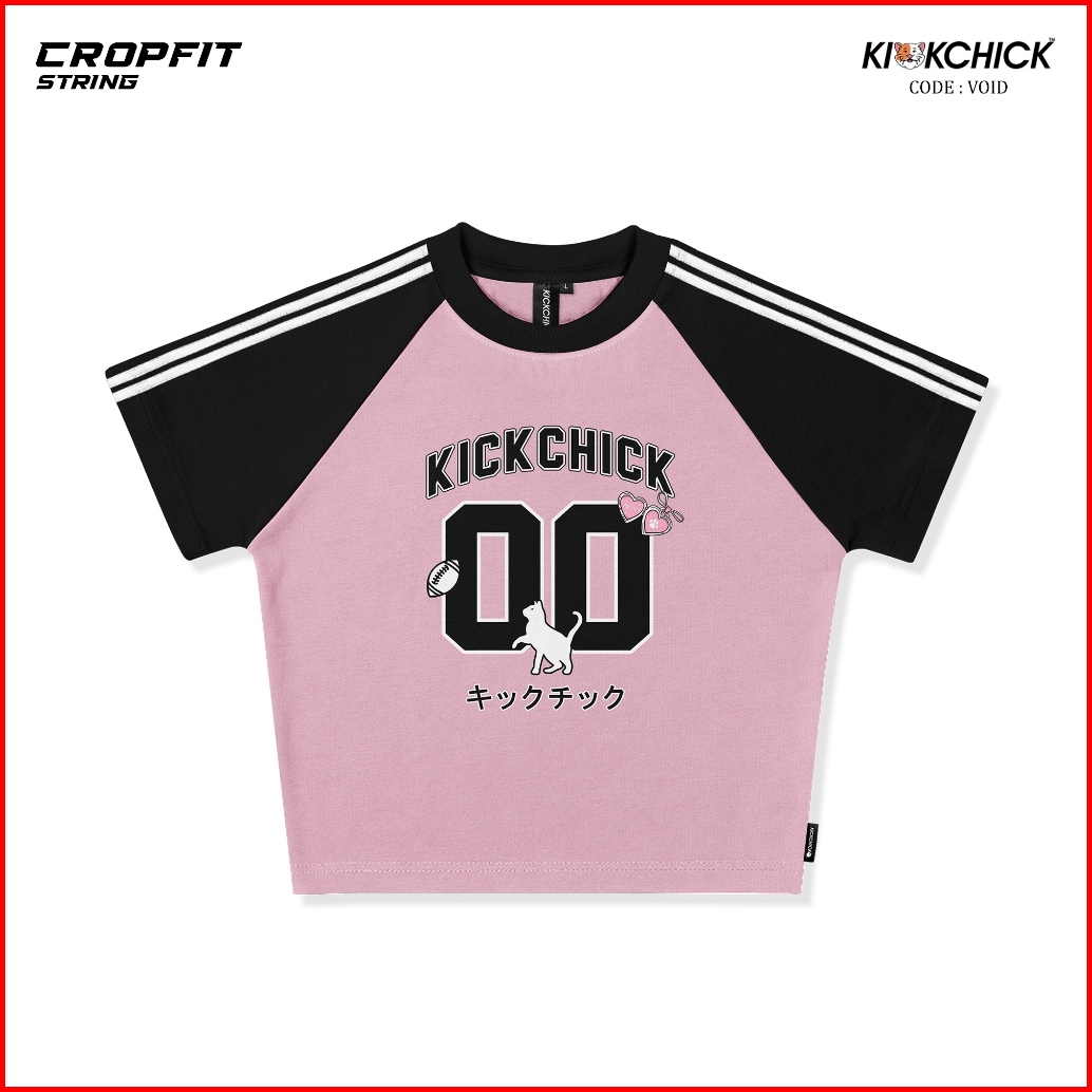 Kickchick Croptop Slimfit String Void 00 Pink Black Tshirt Crop Kaos Atasan Croptee Kc-csf-strings005