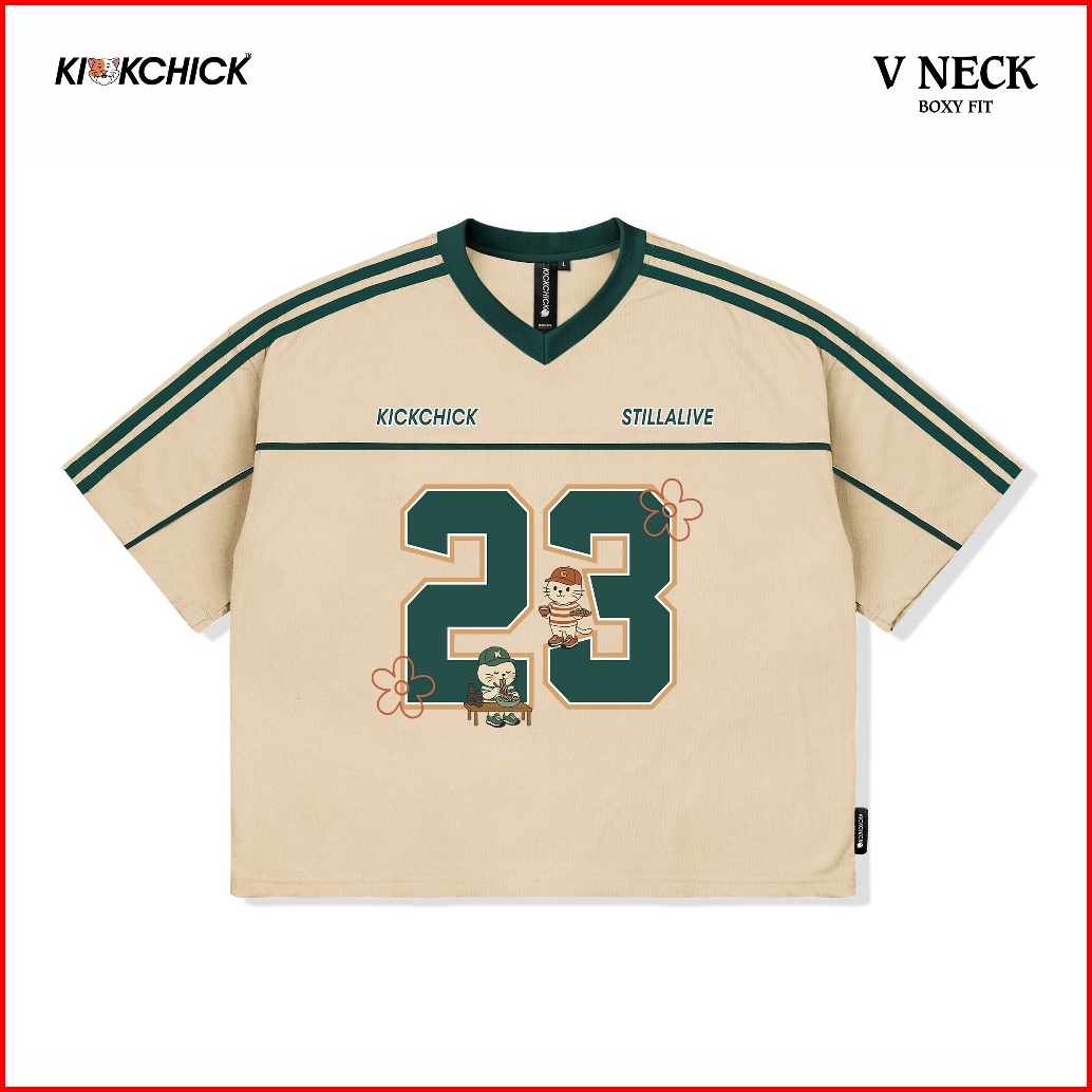 Kickchick V-neck Boxyfit Twenty Three Mocca Green Kaos Oversize Boxy Atasan Kc-ovzbx-vn004