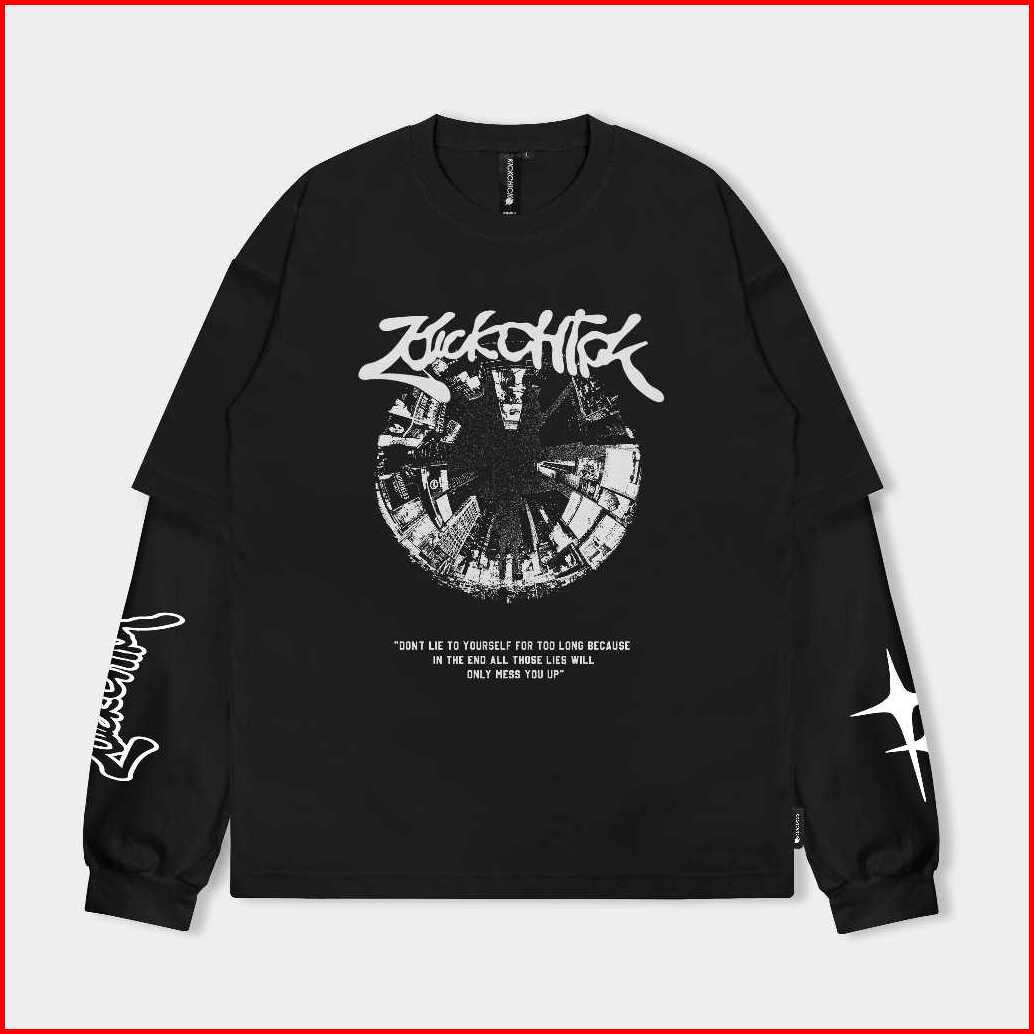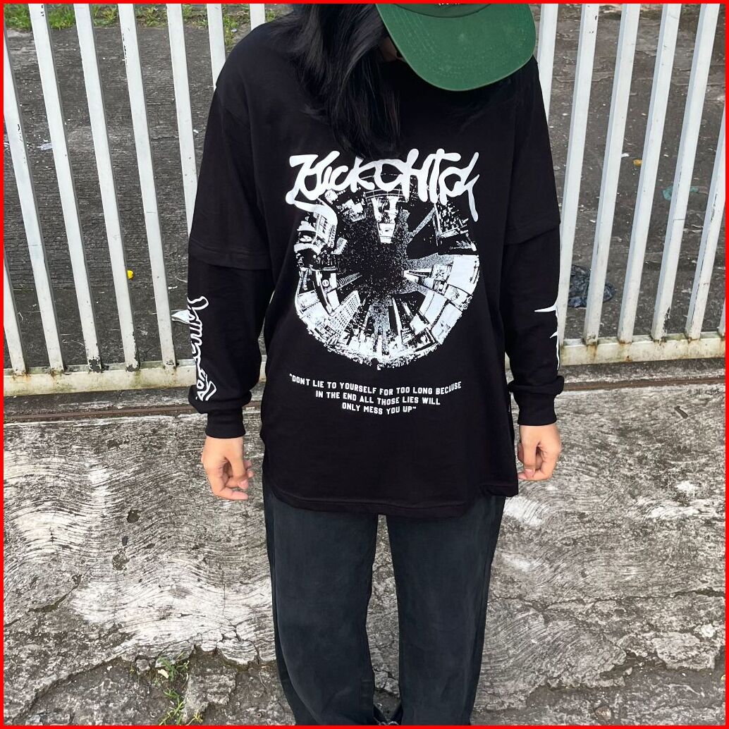 Kickchick Reguler Doublesleeve Chaotic Black Longsleeve Rib Kaos Pria Lengan Panjang Kcdsv2007