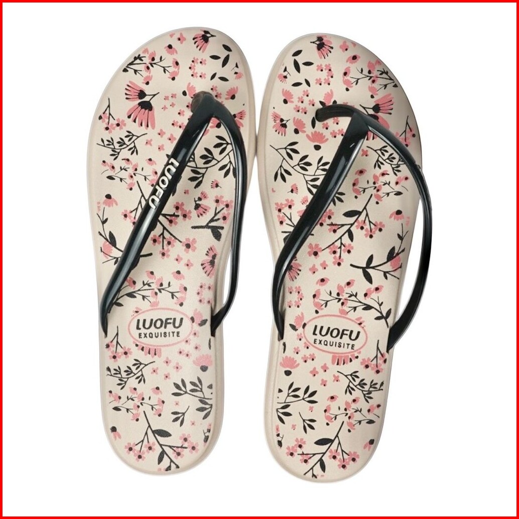 Luofu Sendal Jepit Jelly Karet Wanit Pvc Motif Bunga F2315-js6w A04