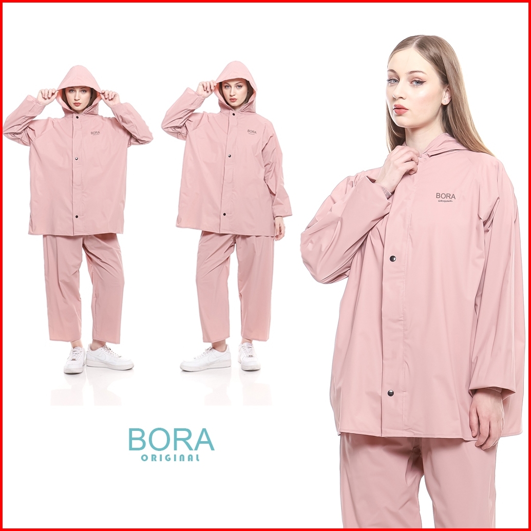 Bora Raincoat Pria Dan Wanita Anti Rembes Jas Hujan Setelan Pink