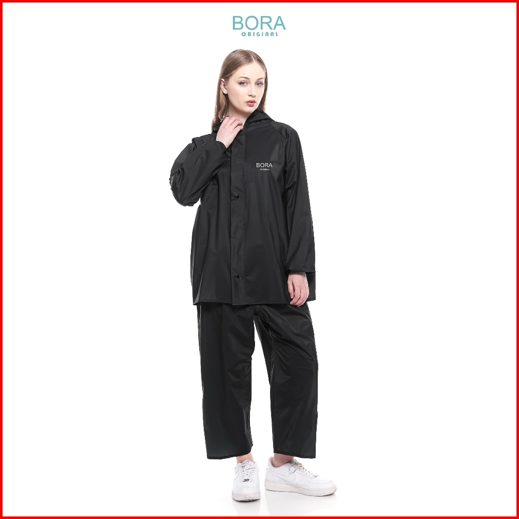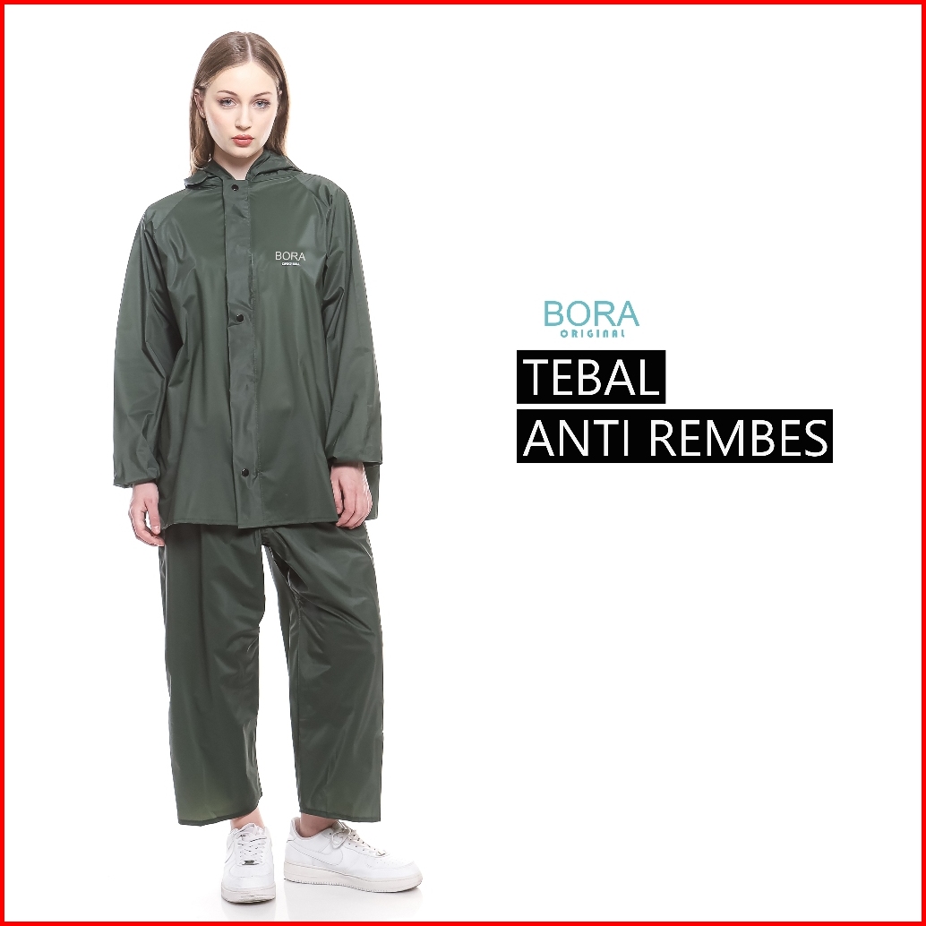 Bora Jas Hujan Wanita Stelan Mantol Tebal Pink