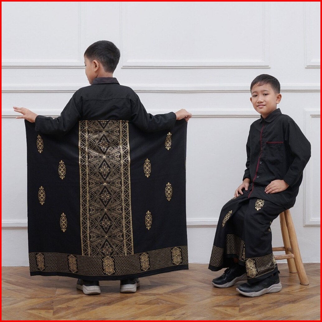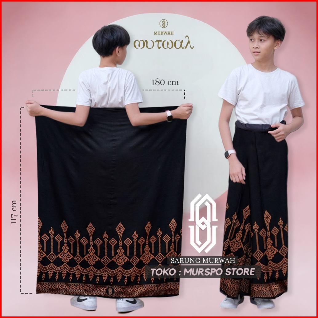 Sarung Anak Laki Laki Umur 6-14 Tahun Motif Murwah Junior Sd Smp Polos Hitam