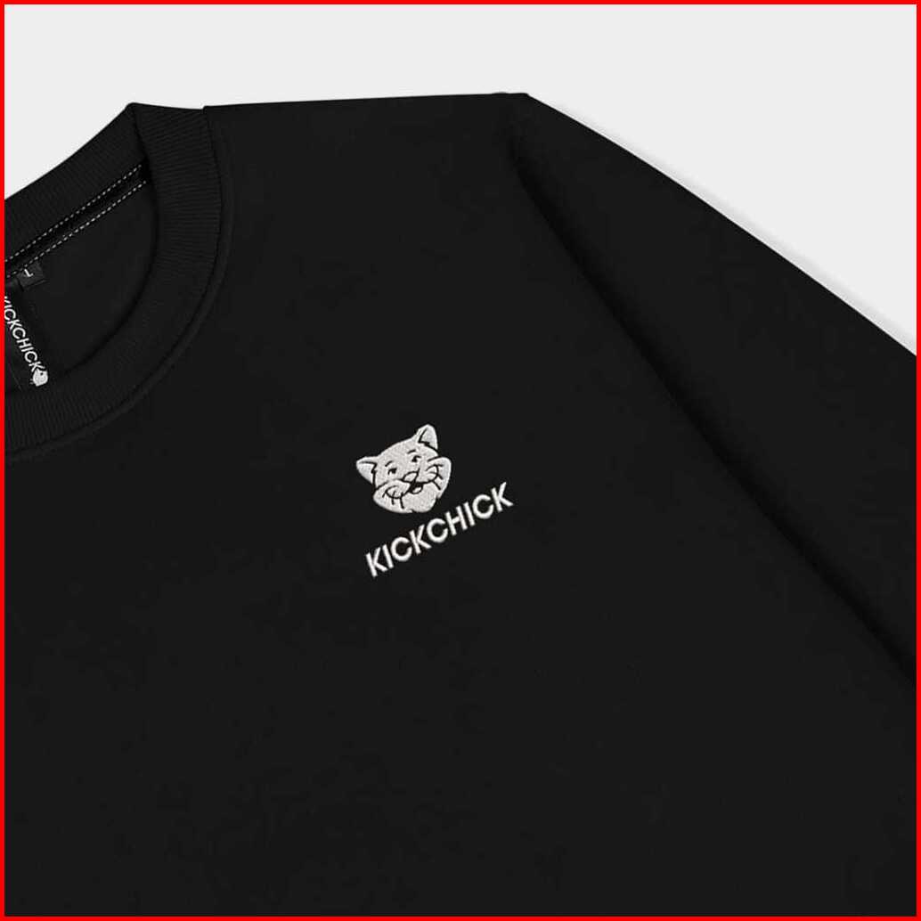 Kickchick Crewneck Kitten Logo Embroidery Black White Sweater Sweatshirt Lengan Panjang Kccn114