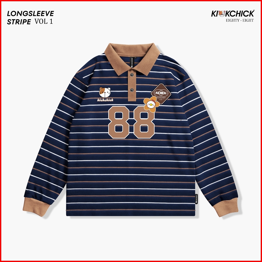 Kickchick Longsleeve Polo Stripe Eighty - Eight Mocca Kaos Atasan Polo Lengan Panjang Stripe Kc-ls-psstrip001
