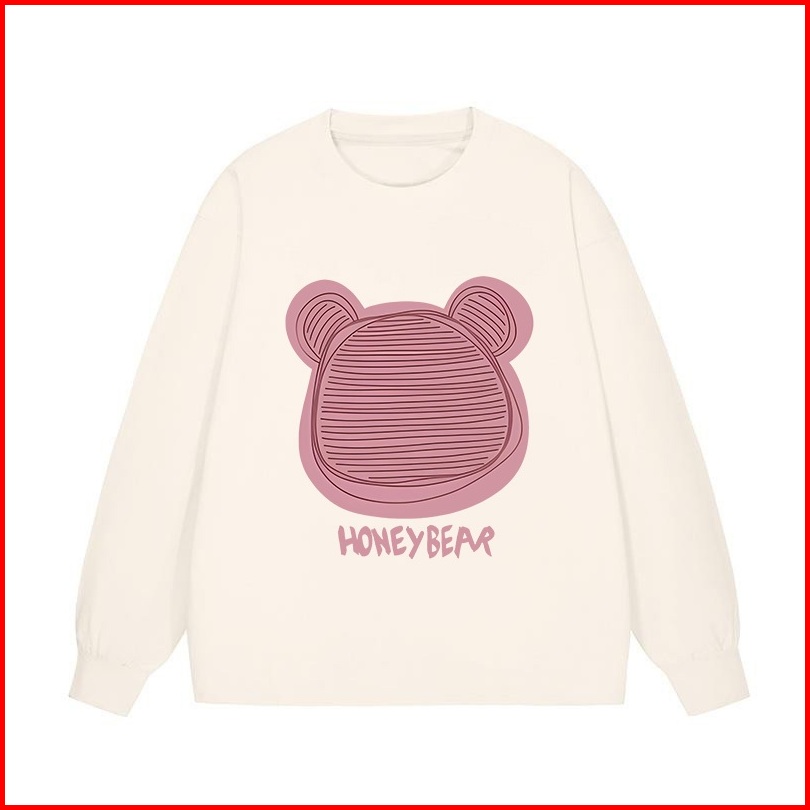 Monseur Sweater Wanita Korea Lengan Panjang Motif Beruang Kecil Warna Merah Muda Dengan Kerah Bulat Cewek Switer Wanita