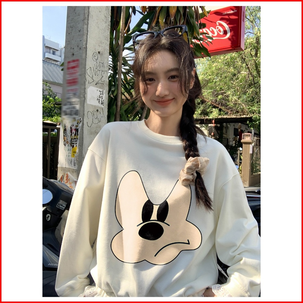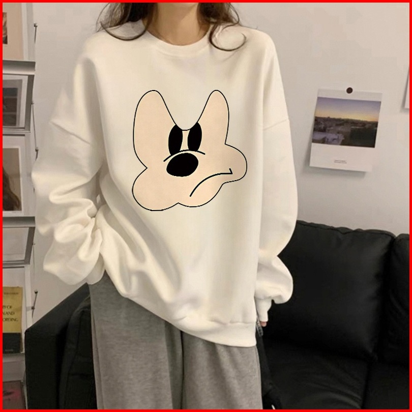 Forteid Sweater Lengan Panjang Oversized Street Style Korean Style Switer Wanita Oversize Kaos Cetakan Ekspresi Lucu Kor