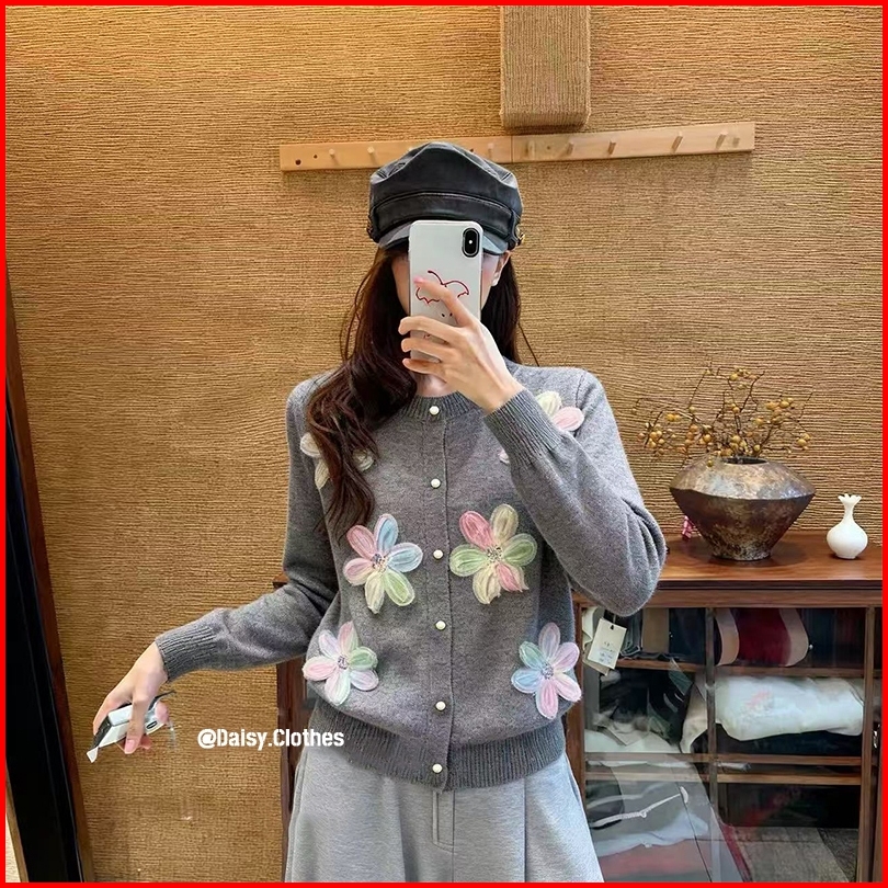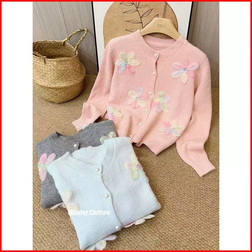 Sweater Rajut Lengan Panjang Dengan Bunga Lembut Atasan Luas Untuk Tampilan Awet Muda