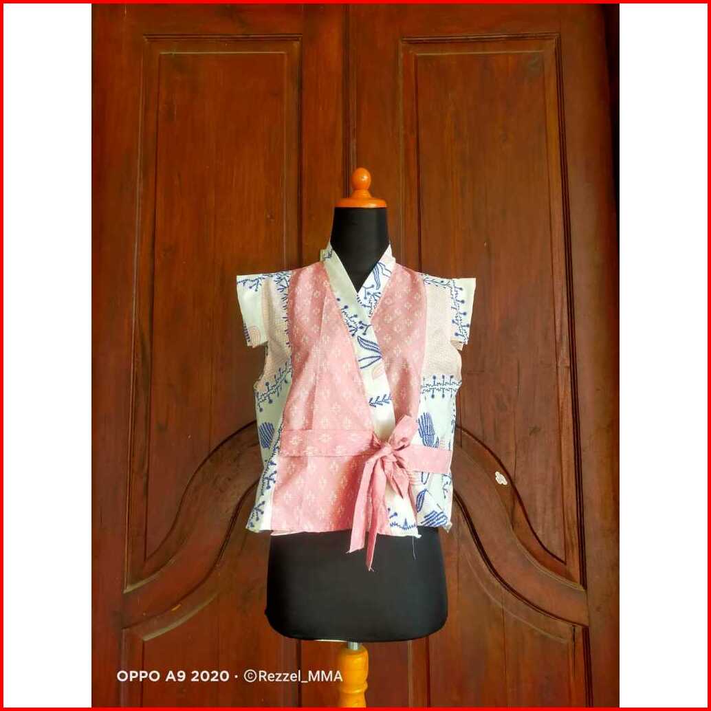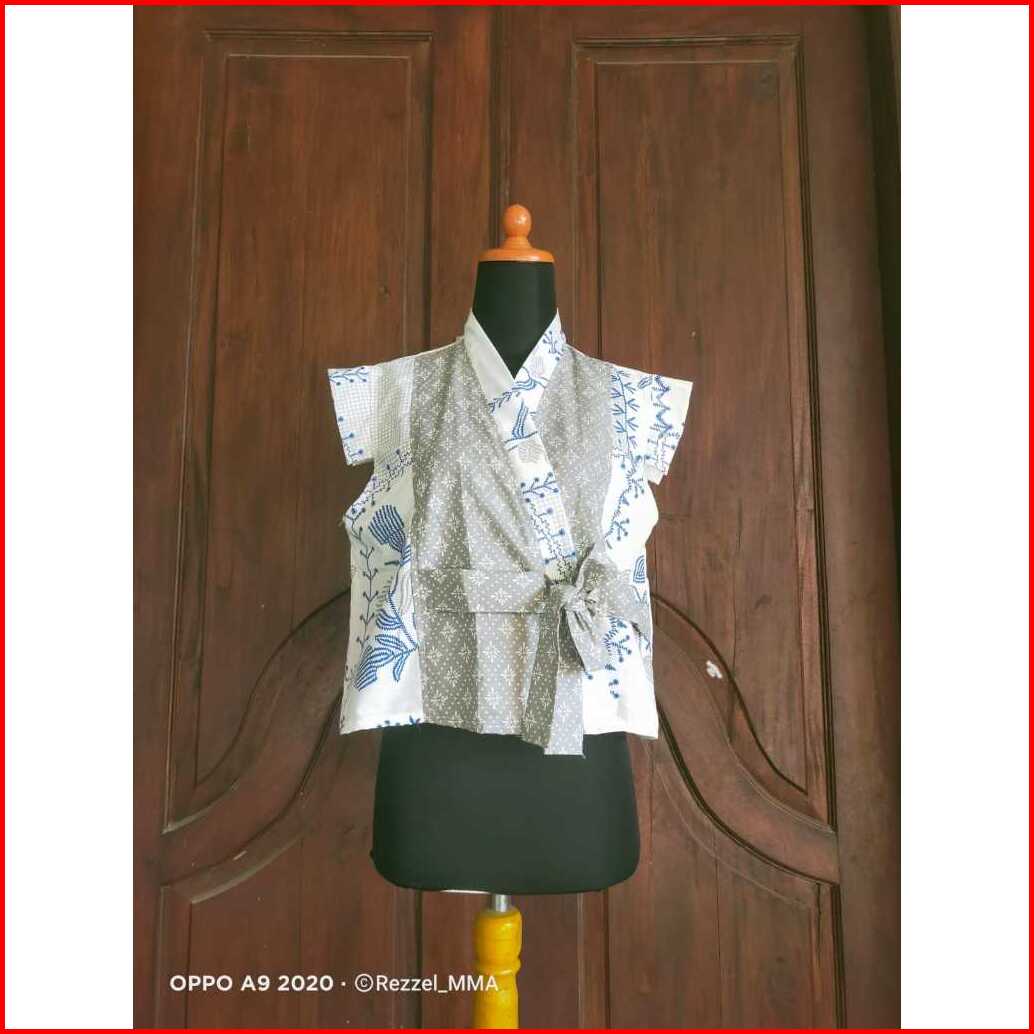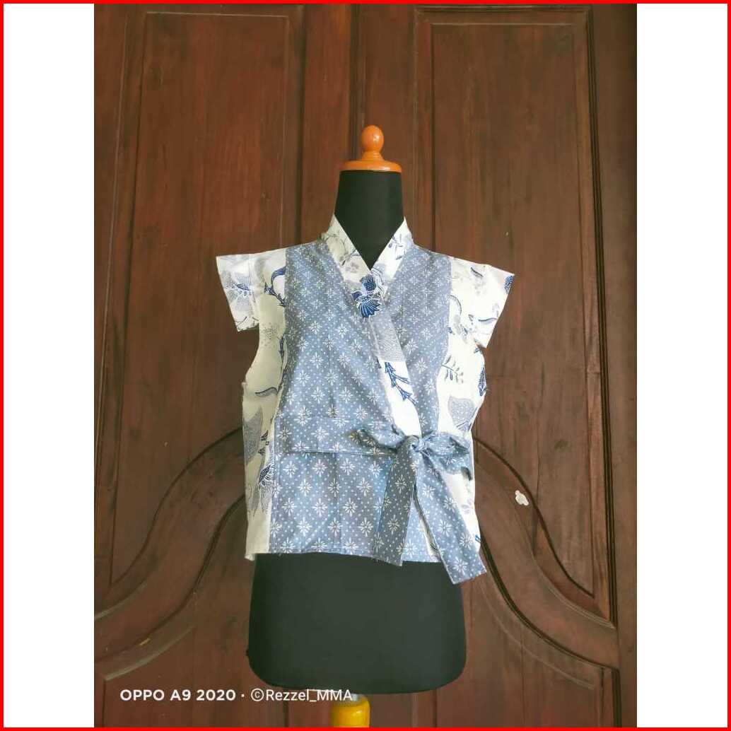 Outer Bolero - Outer Rompi Vest Batik Tali Pita Modern Tanpa Lengan Leher V Motif Bunga Termurah Warna Biru Pink Tosca C