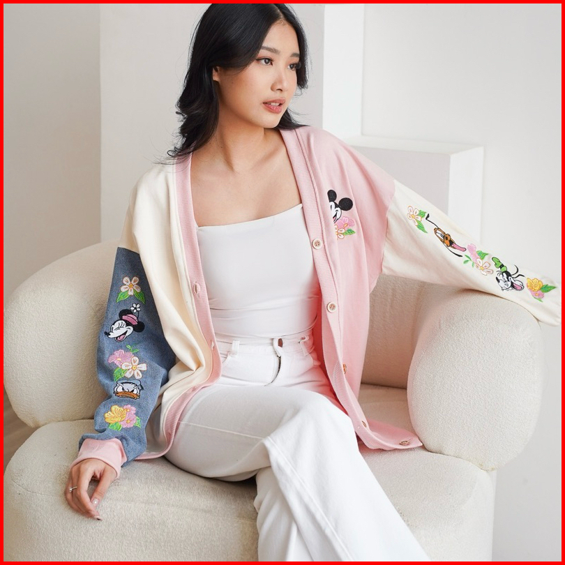 Zalya - Mickey Pastel Denim Jeans Bordir Korean Cardigan Babyterry Premium