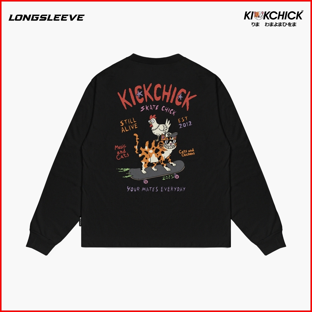 Kickchick Longsleeve Skate Chick Black Dusty Pink Kaos Lengan Panjang Atasan Kc-ls143