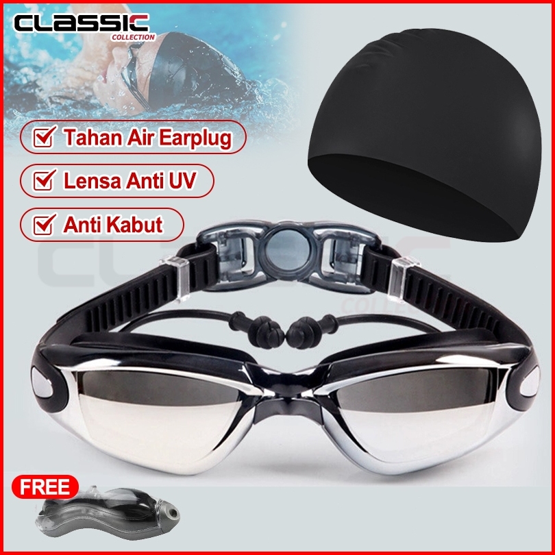 Kacamata Renang Anti Fog Dan Uv Topi Renang Kacamata Renang Penyumbat Telinga Lentur Swimming Glass Lensa Jernih