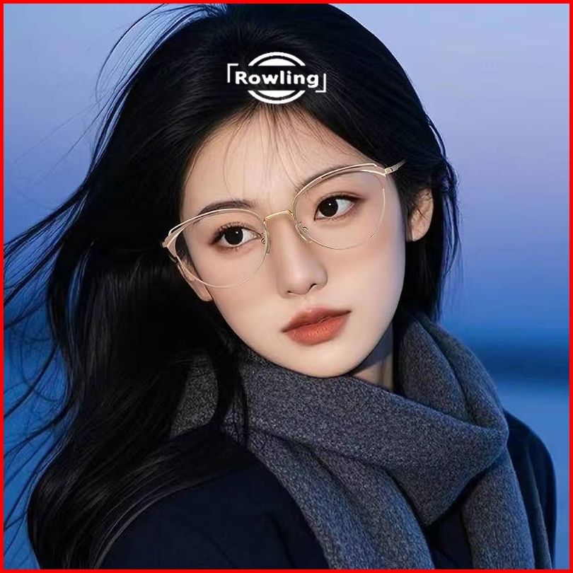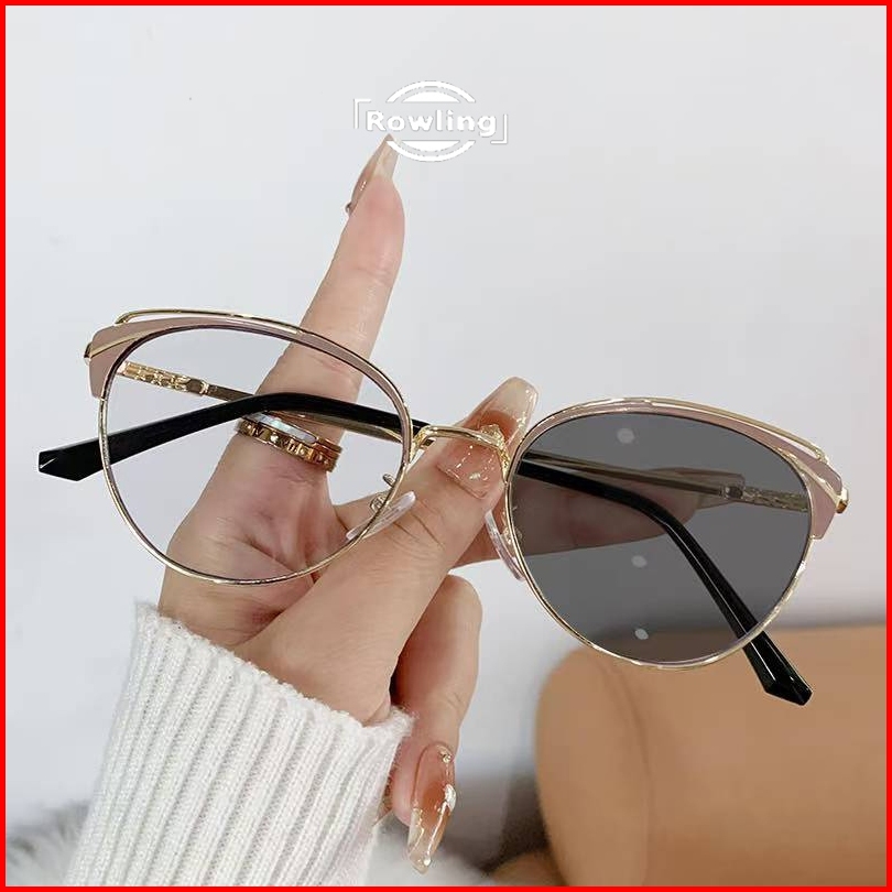 Rowling Pc-597 2 In 1 Kacamata Lensa Photocromic Anti Radiasi Wanita Kacamata Cat Eye Bingkai Titanium Komputer Anti Uv