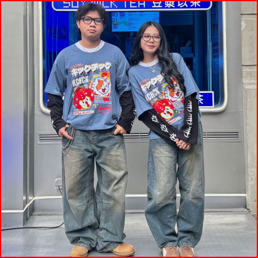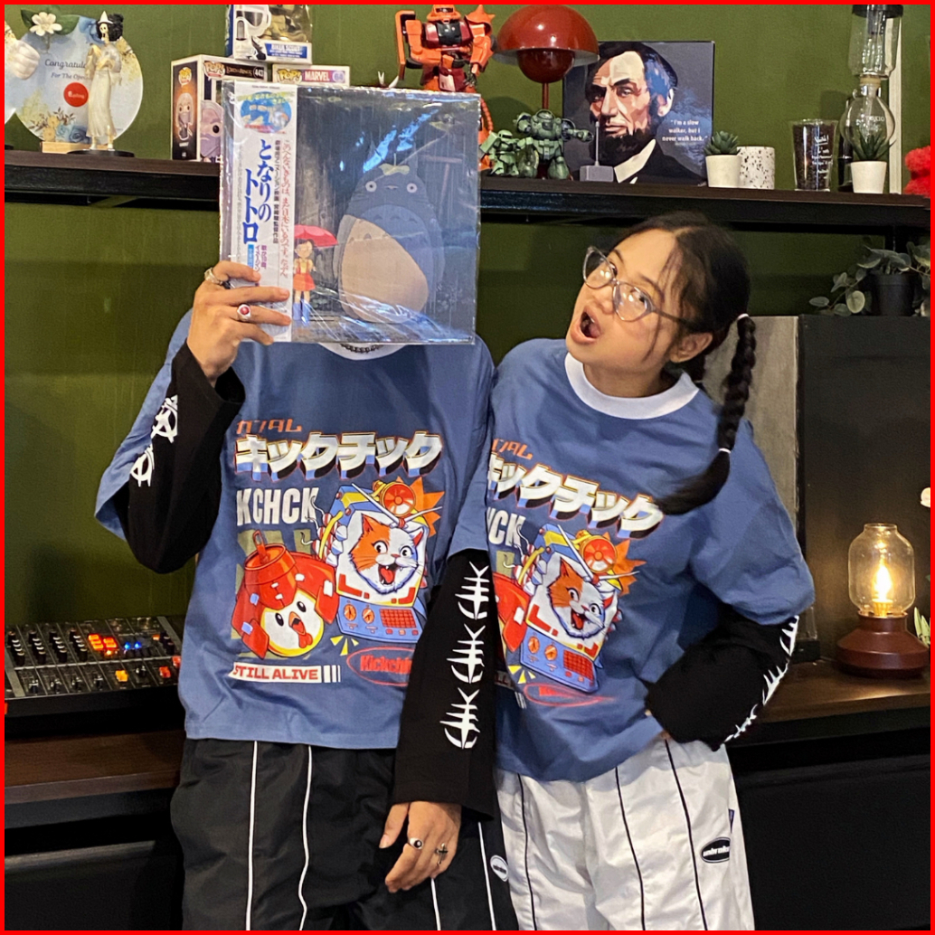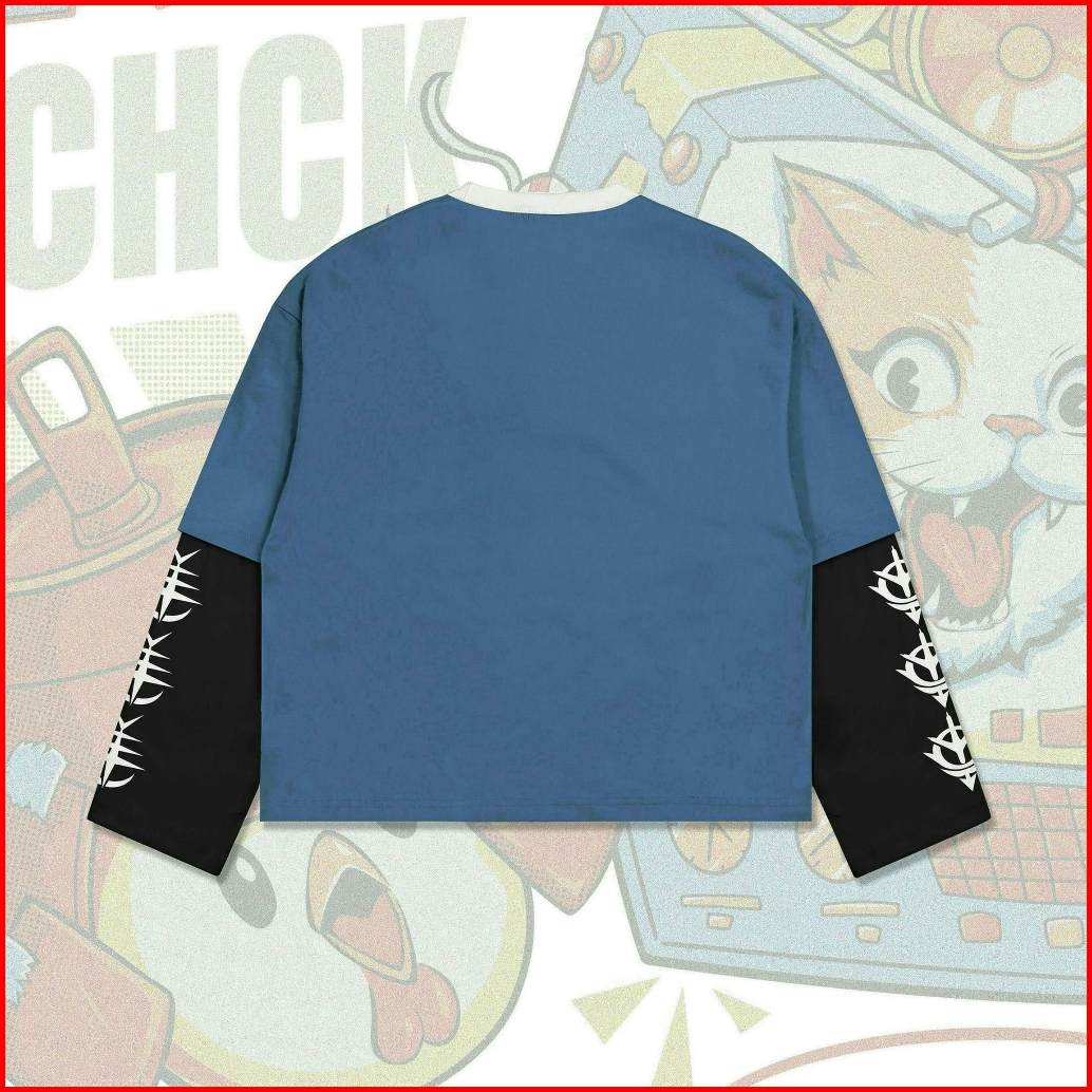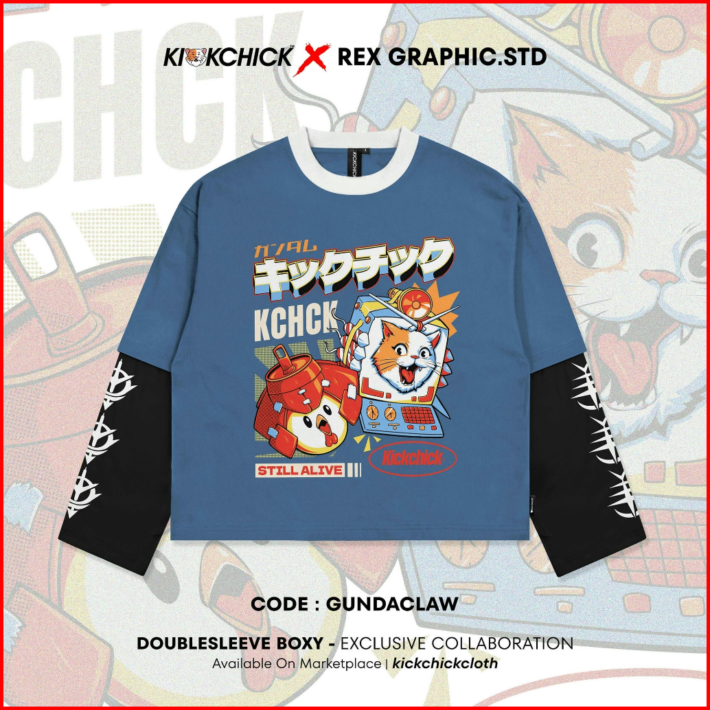 Kickchick X Rex Graphic Doublesleeve Boxy Gundaclaw Steel Blue Black Kaos Atasan Lengan Panjang Kc-rex-ds03-stlbl