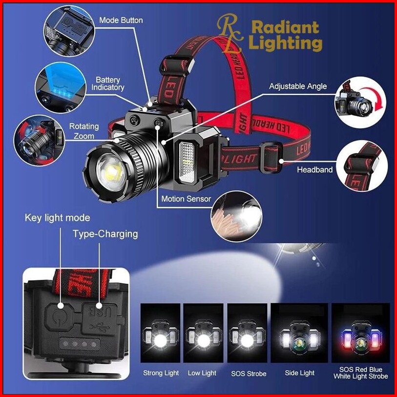 Senter Kepala Lampu Kepala Led Super Terang Outdoor Headlamp Usb Charge