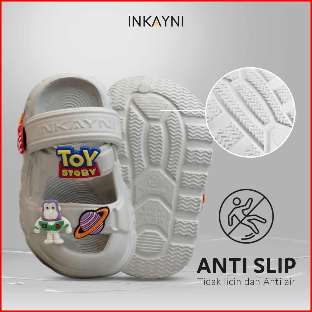 Inkayni Sendal Selop Anak Laki-laki Size 18-23 Anti Slip Motif Toy Story Baim Lucu Kodok
