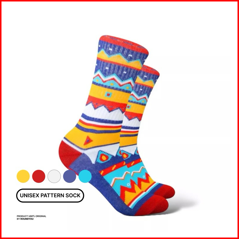 Round You Kaos Kaki Motif Etnik Warna Warni Socks Fashion Tebal Lucu Nyaman Stylish