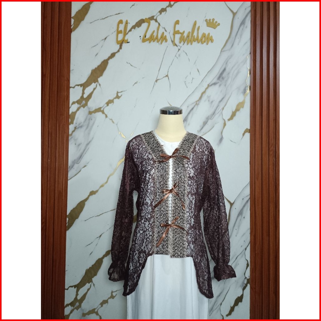 Outer Tunik Tille Brokat Kardigan Tille Brokat Tangan Panjang Kebaya Tunik Kondangan Kekinian