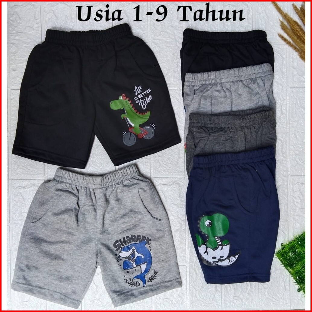 Paket 4 Pcs Celana Pendek Anak Babyterry 1-10 Tahun Laki Laki Perempuan Cowok Cewek