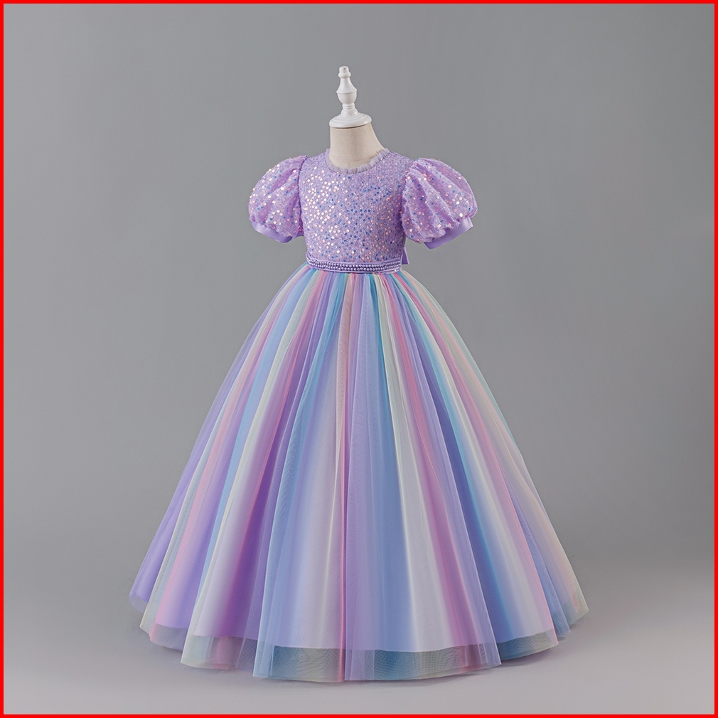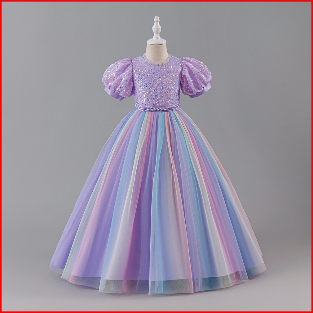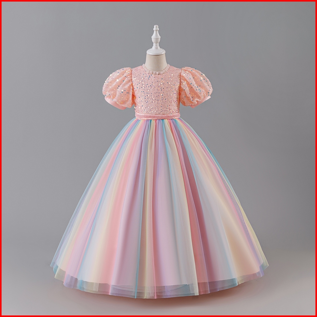 3-9thn Gaun Natal Pesta Anak Perempuan Dress Natal Premium Terbaru Rainbow Sequined Party Dress Anak