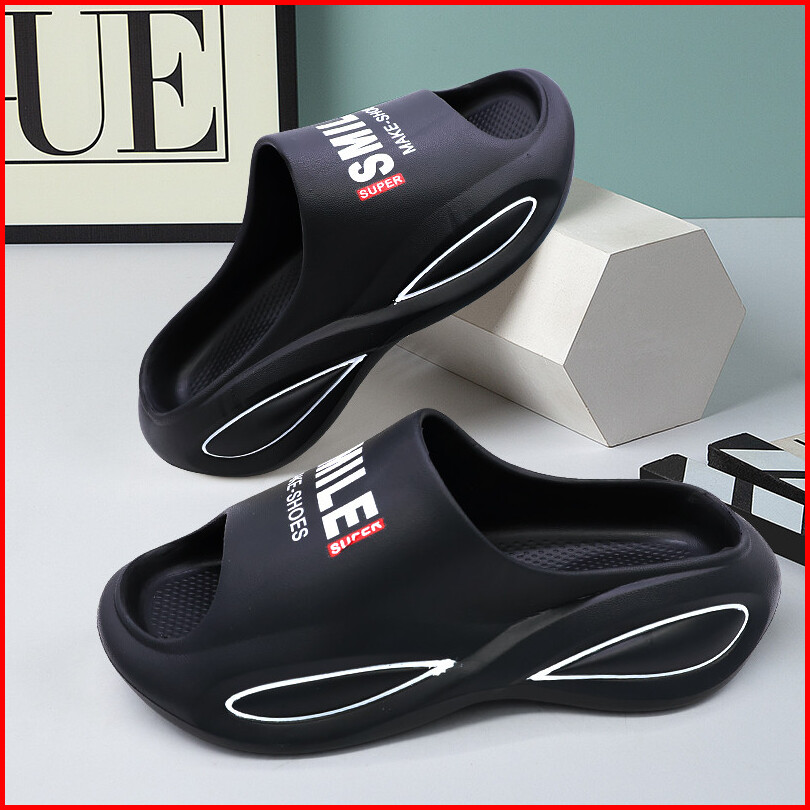 Socany Sandal Slide Cowok Pria Sandal Selop Pria Hitam Sandal Slip On Karet Slipper Eva Empuk Elastis Ringan Size