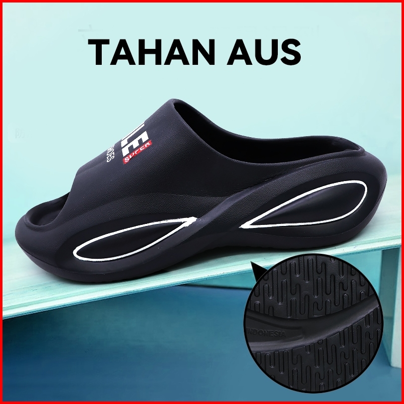 Socany Sandal Slide Cowok Pria Sandal Selop Pria Hitam Karet Slipper Eva Ukuran 35-44