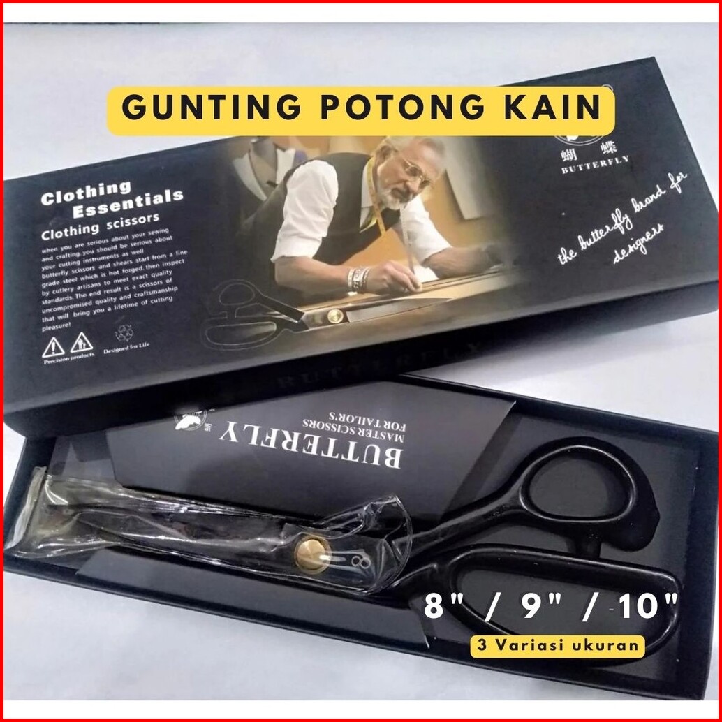 Gunting Potong Kain Butterfly Original Hitam Bahan Baja Mangan Galvanis 8 9 10 Professional Tailor Scissors