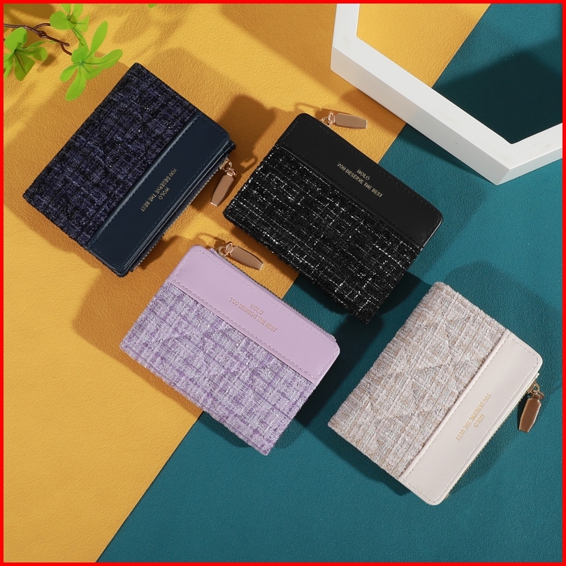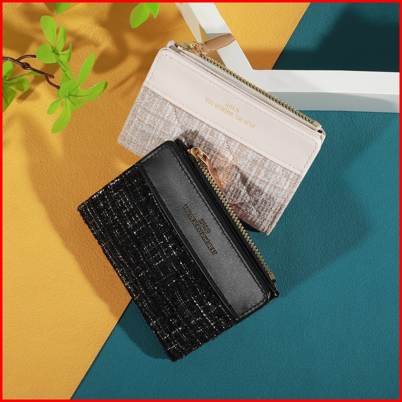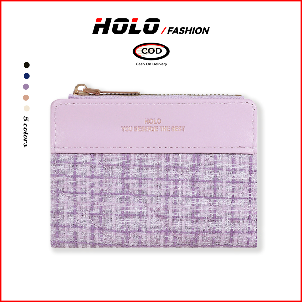Holo Dompet Wanita Kecil Aesthetic Korea Dompet Lipat Kulit Id Card Holder Dompet Koin Mini Terbaru