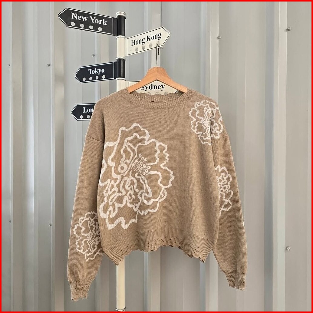 Nara Grosir - Peony Flower Knit Sweater Sweater Rajut Premium Tebal Motif Bunga